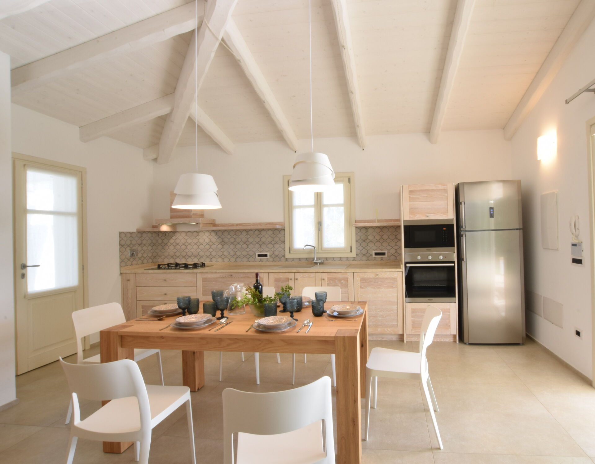 Keuken – woonkamer: goed uitgeruste keuken, eettafel, vaatwasser, ijskast, diepvriezer, magnetron, oven, italiaans koffiezetapparaat, bank, WIFI internet, airconditioning, tv, uitgang naar de tuin.