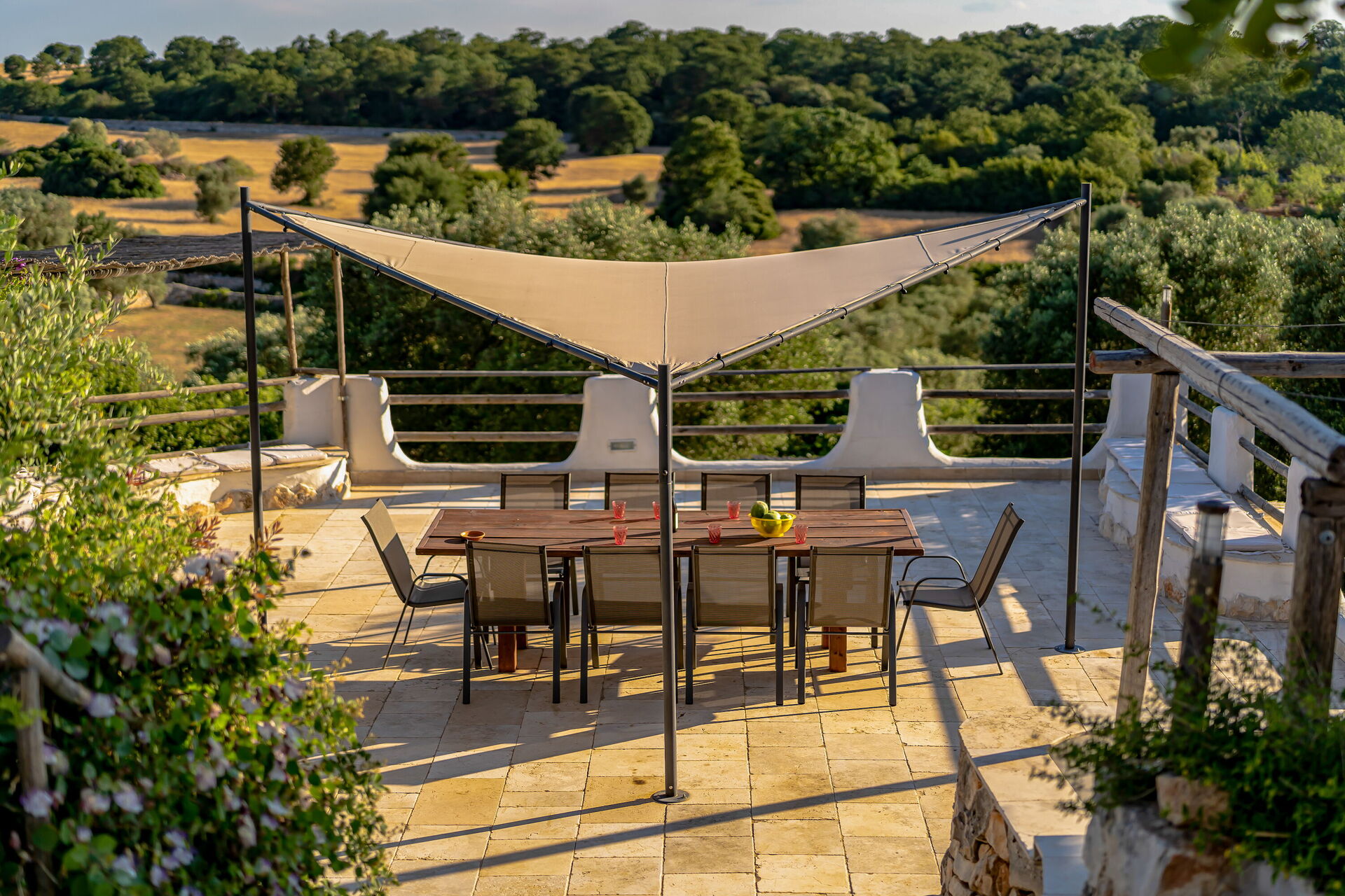 Wanneer u aankomt wordt u ontvangen door de eigenaar of beheerder en vindt u een mooie, schone en goed onderhouden woning met uitzicht over de heuvels perfect voor een geweldige vakantie in Apulië. Hoe u de dagen ook doorbrengt - musea bezoek, met excursies, winkelen of rijdende door het prachtige landschap, zodra u thuis komt kunt u uitrusten samen met familie en vrienden bij het zwembad voor een perfecte afsluiting van nog weer een dag in Apulië. Op het terrein is er voor uw genoegen een jacuzzi, patio en barbecue. Als u van koken houdt is er een goed uitgeruste keuken met o.a. koffiezetapparaat, broodrooster, fornuis en ijskast en natuurlijk voldoende servies en bestek voor tot 11 personen. Als u liever buiten eet is er een veranda met tuinmebilair waar u van het weer kan genieten terwijl u buiten eet.