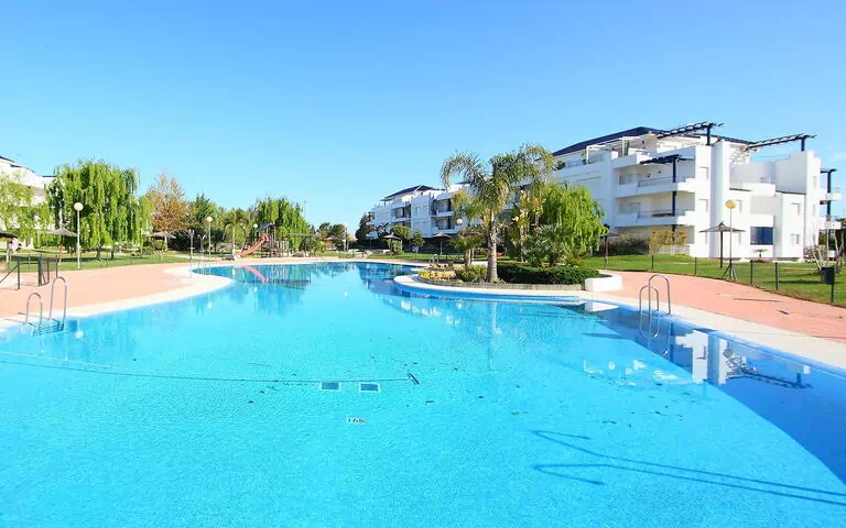 Costa Ballena: Luxueus ingerichte urbanisatie, gelegen te midden van het golfterrein (18-holes) aan de Costa Ballena. Flatgebouw "Bahia Golf". 1 km van zee. Voor medegebruik: tuin met gazon, openluchtzwembad (15.06.-15.09.). Kinderzwembad, buitendouche, kinderspeelplaats (glijbaan, schommel). In het huis: lift. Gemeenschappelijke garage. Levensmiddelenwinkel, restaurant 700 m, zandstrand 1 km. Golfterrein 250 m. Het vakantiecomplex beschikt over een aantal tafeltennistafels (extra).