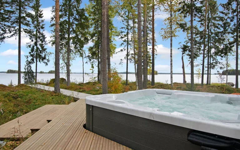 Stylishly decorated modern cabin, suitable for year-round use. Great view of lake Alvajärvi from the cabins, terraces and beach.