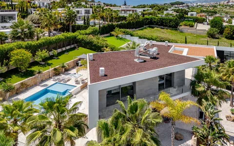 Zeer groot, moderne, luxueuze villa "Eos", van 3 verdiepingen. In de wijk Cansalades Park Monte Olimpo, 5 km van het centrum van Jávea - El Arenal, 8 km van het centrum van Moraira, rustige, zonnige ligging, 5 km van zee, 5 km van het strand. Voor alleengebruik: groot, mooie, verzorgde tuin op verschillende niveaus met gazon en planten, vijver, openluchtzwembad hoekig, geen inkijk (10 x 4 m, 40 - 180 cm diepte, seizoensgebonden beschikbaarheid: 01.Jan. - 31.Dec.) met trap. Buitendouche, hot tub, patio, prieel, tuinmeubelen, barbecue. In het huis: centrale verwarming, air-conditioning, alarmsysteem. Overdekte parkeerplaats (voor 2 auto's) op het terrein. Supermarkt 2.5 km, restaurant 1 km, bar 2.5 km, bakkerij 2.5 km, café 2.5 km, bushalte 5 km, zandstrand "El Arenal" 5 km, stenenstrand "La Granadella" 10 km. Jachthaven 6 km, jachthaven 6 km, golfterrein (9 holes) 3 km, surfschool 5 km, zeilschool 5 km. Auto noodzakelijk. De eigenaar accepteert geen jeugdgroepen.