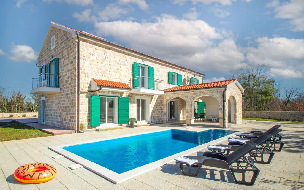 Eengezinswoning "Skelin". In het gehucht Drinovci, 13 km van het centrum van Drniš, 30 km van het centrum van Šibenik, rustige, zonnige ligging, 30 km van zee, te midden van groen. Voor alleengebruik: terrein 1.000 m2 (omheind), gazon, openluchtzwembad hoekig (8 x 5 m, 150 cm diepte, seizoensgebonden beschikbaarheid: 01.Mei. - 15.Okt.) met trap. Buitendouche, terras (100 m2). In het huis: internetaansluiting, wasmachine. Parkeerplaats (voor 6 auto's) bij het huis op het terrein. Winkel 9 km, restaurant 10 m, bushalte 15.1 km, kiezelstrand 30 km, strandbad 30 km. Attracties in de buurt: NP Krka 10 km.