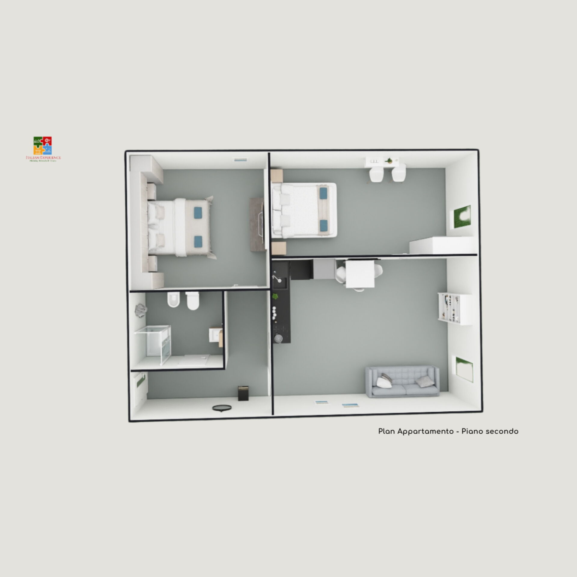 Met: keuken – woonkamer, 2 slaapkamers, badkamer.