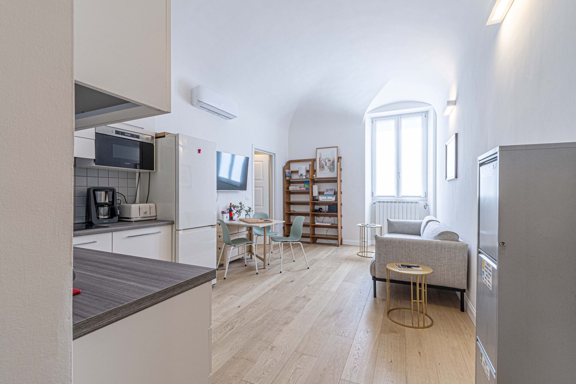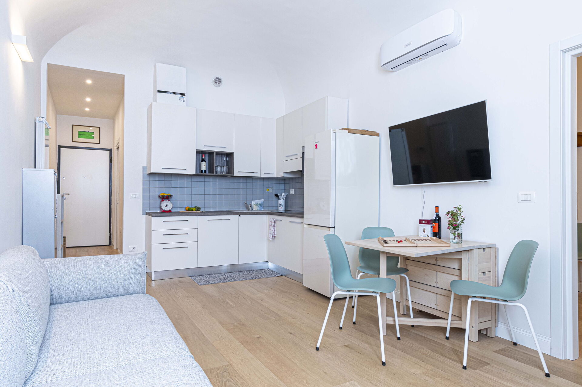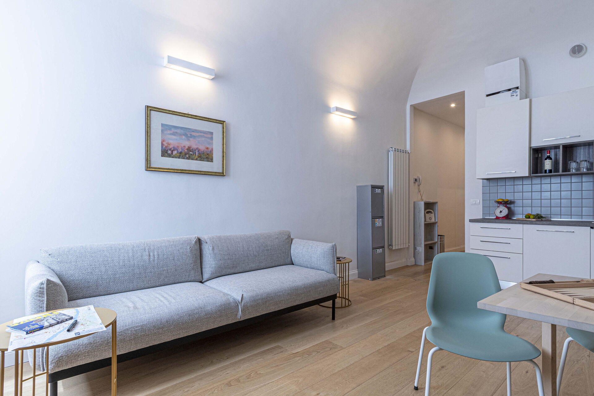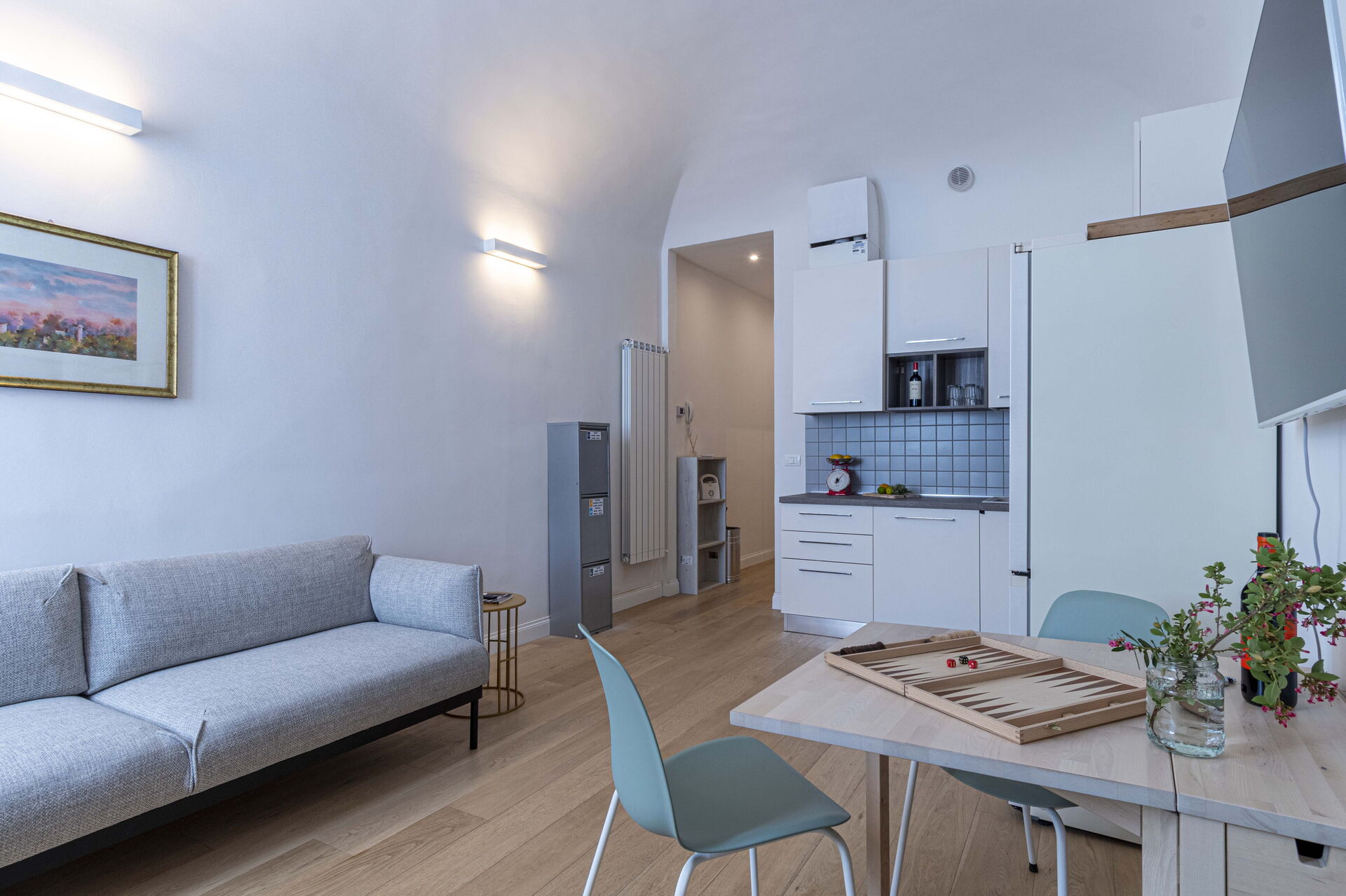Bij aankomst te Atelier la Scala vindt u een fraaie, schone en goed onderhouden woning met uitzicht over de stad ideaal voor een geweldige vakantie in Toscane. Hoe u de dagen ook doorbrengt - winkelen, met excursies, musea bezoek of rijdende door het prachtige landschap, zodra u thuis komt kunt u uitrusten samen met familie en vrienden voor een perfecte afsluiting van nog weer een dag in Toscane. Dineren met vrienden en familie is een grote onderdeel van de Toscaanse cultuur. Maak gebruik van de goed uitgeruste keuken om maaltijden te bereiden met lokale producten terwijl u op vakantie bent. De keuken biedt o.a. een koffiezetapparaat, magnetron oven, broodrooster, fornuis en ijskast, en natuurlijk ook voldoende servies en bestek voor minstens vier personen.