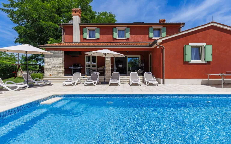 Mooi eengezinswoning "Villa Wruss", van 2 verdiepingen. In het gehucht Sumber, 7 km van het centrum van Labin, 12 km van het centrum van Rabac, rustige, zonnige ligging, 12 km van zee, te midden van groen. Voor alleengebruik: terrein 750 m2 (omheind), planten en bomen, openluchtzwembad hoekig (8 x 4 m, 140 cm diepte, seizoensgebonden beschikbaarheid: 01.Mei. - 30.Okt.) met trap. Buitendouche, terras, tuinmeubelen, barbecue, kinderspeelplaats (glijbaan, schommel), onderhoud zwembad door de eigenaar/tuinman. In het huis: internetaansluiting, tafeltennis, tafelvoetbal, trampoline, wasmachine. Beschikbaar: fietsen (3). Parkeerplaats (voor 3 auto's) bij het huis op het terrein. Winkel 3 km, supermarkt 7 km, restaurant 3 km, bushalte 6.3 km, kiezelstrand 12 km. Vliegveld 50 km van het huis.