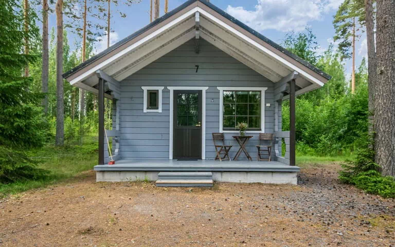 This rental cabin is situated in the Kuus-Hukkala holiday village, where the nearest services, including a restaurant, a sauna world, and a small grocery store, are just 100 meters away. The restaurant is open daily during the summer season and on weekends during other times.