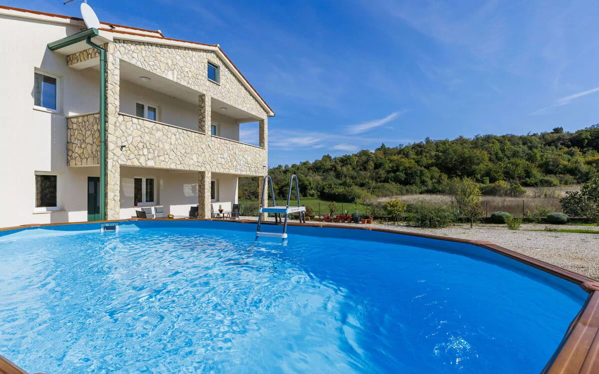 Comfortabele eengezinswoning "Villa Veronica", van 2 verdiepingen. In het gehucht Gondolići, 3.5 km van het centrum van Labin, 7 km van het centrum van Rabac, 4 km van zee. Voor alleengebruik: terrein 1.300 m2 met planten, openluchtzwembad (verhoogd) hoekig (15 m2, 120 cm diepte, seizoensgebonden beschikbaarheid: 01.Mei. - 30.Sep.). Buitendouche, terras, barbecue (glijbaan), onderhoud zwembad door de eigenaar/tuinman. In het huis: internetaansluiting, trampoline. Parkeerplaats (voor 4 auto's) bij het huis op het terrein. Winkel 1.5 km, supermarkt 3.5 km, restaurant 1.5 km, bushalte 2 km, kiezelstrand 4 km. Vliegveld 45 km van het huis.