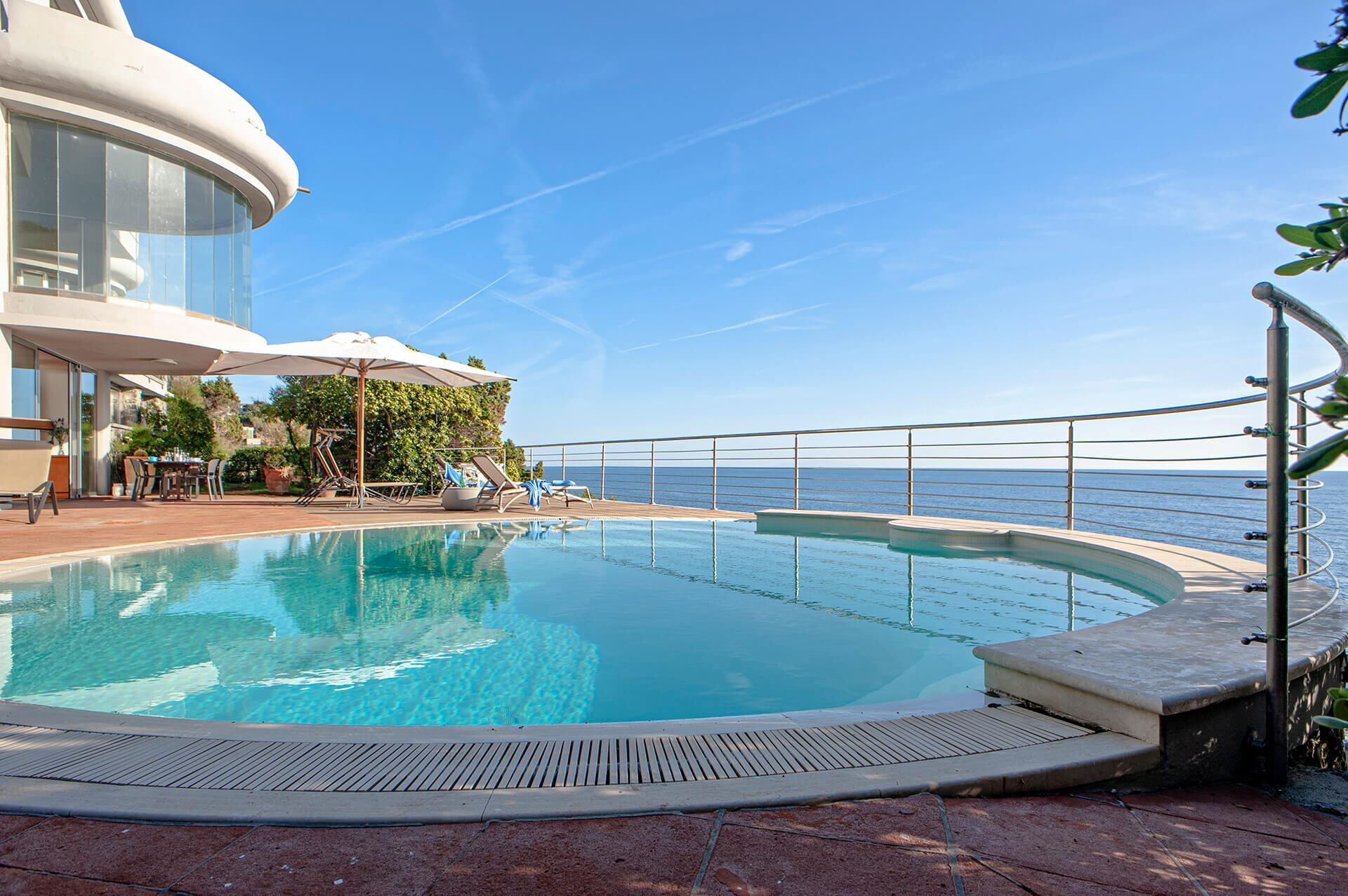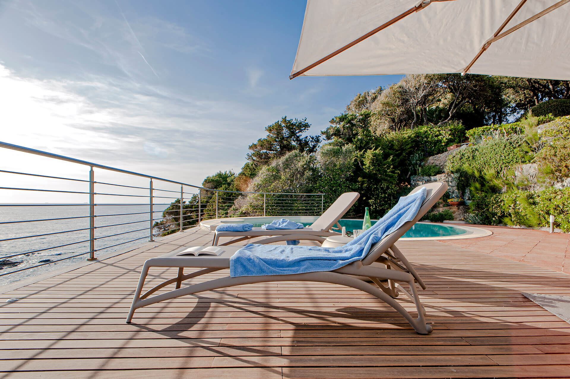 De buitenruimtes van deze opmerkelijke accommodatie bieden een rond zwembad met een diameter van ongeveer 6,30 meter en een diepte van ongeveer 3 meter, gevuld met verkwikkend zeewater. Een speciaal servicebadkamer bedient het zwembadgebied op praktische wijze. De uitgestrekte tuin beschikt over weelderige gazons versierd met mediterrane vegetatie, waaronder pitosfori, tamerici, steeneiken en aardbeibomen, die een natuurlijke en geurige omgeving creëren. Meerdere terrassen bieden uitzonderlijke ruimtes voor buitenleven, waarbij het terras op de eerste verdieping een weids uitzicht op zee biedt, perfect voor dineren in de buitenlucht en het bekijken van zonsondergangen. Twee solarium-terrassen op de tweede verdieping nodigen u uit om te zonnebaden terwijl u naar de eindeloze blauwe horizon kijkt. Directe toegang tot de zee wordt bereikt via ladders die vanaf de villa afdalen naar een vlak en toegankelijk klifplatform, waar u kunt zonnebaden, vissen, duiken voor zwemavonturen of kunt snorkelen in het kristalheldere water beneden. Het zwembad is in gebruik van 1 mei tot en met 31 oktober.
