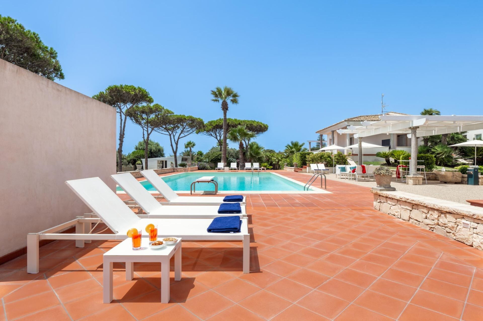 Villa delle Palme is een exclusieve vakantievilla met privézwembad gelegen aan zee in Marina di Modica, een klein badplaatsje aan de zuidkust van Sicilië, Italië. Deze prestigieuze residentie is omgeven door een weelderige tuin en beschikt over ruime, goed uitgeruste panoramische terrassen van waaruit u kunt genieten van een betoverend uitzicht op de zee. De accommodatie bestaat uit twee onafhankelijke villa's, Casa Grande en Casa Piccola, die uitkijken op een groot zwembad en luxueuze accommodatie bieden voor maximaal 18 gasten. De villa is ingericht in een eigentijdse stijl en biedt gastvrije interieurs met modern comfort en exclusieve faciliteiten waaronder een fitnessruimte, sauna, hot tub en sensory shower. Privéparkeergelegenheid is beschikbaar op het terrein. Vanuit deze droomlocatie bereikt u de baroksteden Modica, Scicli, Ragusa Ibla en Noto binnen slechts enkele kilometers, evenals Marina di Ragusa met zijn talrijke nachtclubs en de filmlocaties uit de serie Commissaris Montalbano, waaronder Sampieri, Punta Secca en het Kasteel van Donnafugata.