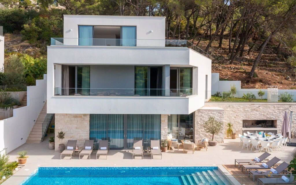 Splitska 5 km van Supetar: Mooi villa "Zastup", van 3 verdiepingen. Rustige, zonnige ligging, 20 m van zee, 250 m van het strand. Voor alleengebruik: terrein 550 m2, openluchtzwembad hoekig, verwarmd (4 x 10 m, 40 m2, 150 cm diepte, seizoensgebonden beschikbaarheid: 01.Apr. - 01.Nov.) met trap. Buitendouche, terras (200 m2), tuinmeubelen, barbecue. In het huis: internetaansluiting, sauna, fitnessruimte, biljart, wasmachine, droger. Motorboot (op aanvraag), parkeerplaats (voor 4 auto's) bij het huis op het terrein. Winkel 600 m, winkelcentrum 5 km, restaurant, bushalte 600 m, kiezelstrand 250 m, stenenstrand 50 m.