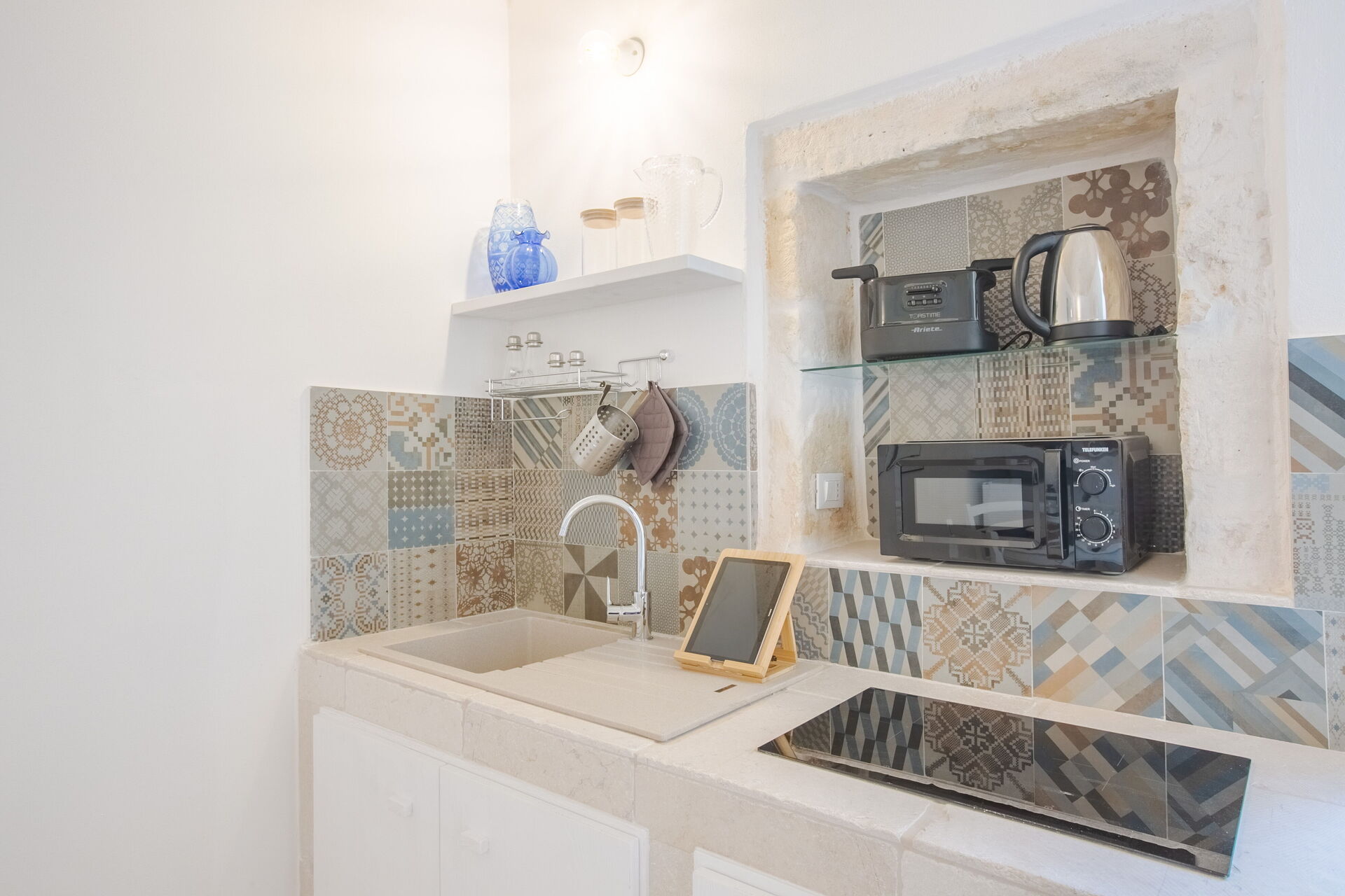 Zodra u aankomt te Casa Bolero vindt u een mooie, schone en goed onderhouden woning met uitzicht over de stad perfect voor een rustige vakantie in Apulië. Voor uw vermaak vindt u een waar u kunt ontspannen met een heerlijk koel drankje na een drukke dag musea bezoeken. Een groot voordeel van het huren van een huis, in plaats van meerdere hotelkamers, is de mogelijkheid om samen met familie en vrienden te ontspannen na een drukke dag van rondkijken en toeren. Geniet samen van een maaltijd met een glas lokale wijn om de dag af te sluiten. Als u van koken houdt is er een goed uitgeruste keuken met o.a. magnetron oven en ijskast en natuurlijk voldoende servies en bestek voor tot vier personen.