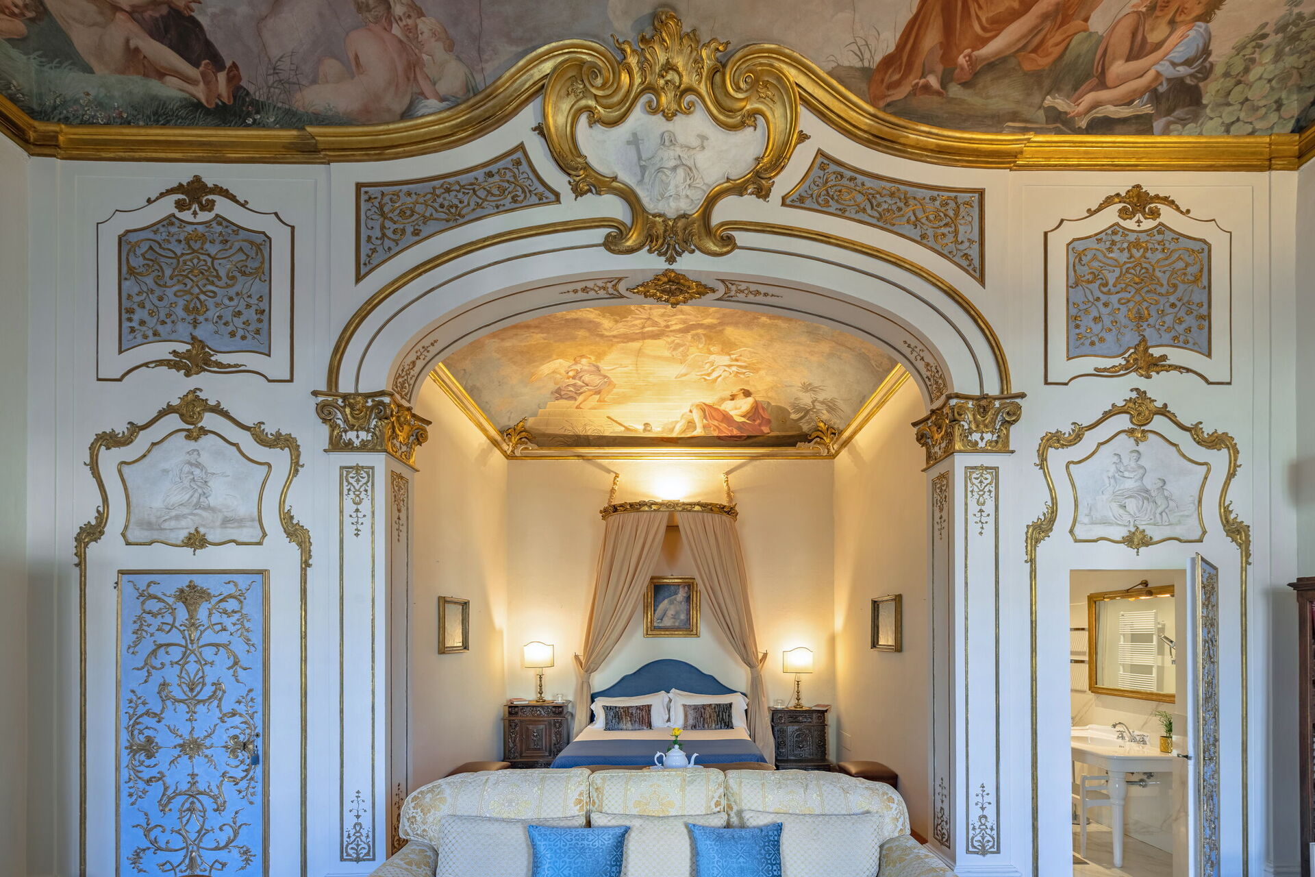 Slaapkamer met toilet (20 m2): king size bed, airconditioning, bank, bureau, toilet .