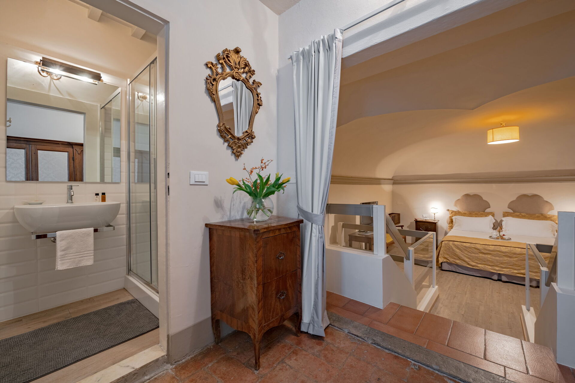 Elegant Suite: Florence Apartment with View on Med is een mooie accommodatie (300 m2) met WiFi internet en air conditioning. De woning is comfortabel geschikt voor max. vier personen in twee slaapkamers en drie badkamers. Gunstig gelegen in het centrum van Florence (Italië), in de streek "Florence En Omgeving" en slechts 32 km van Greve In Chianti.