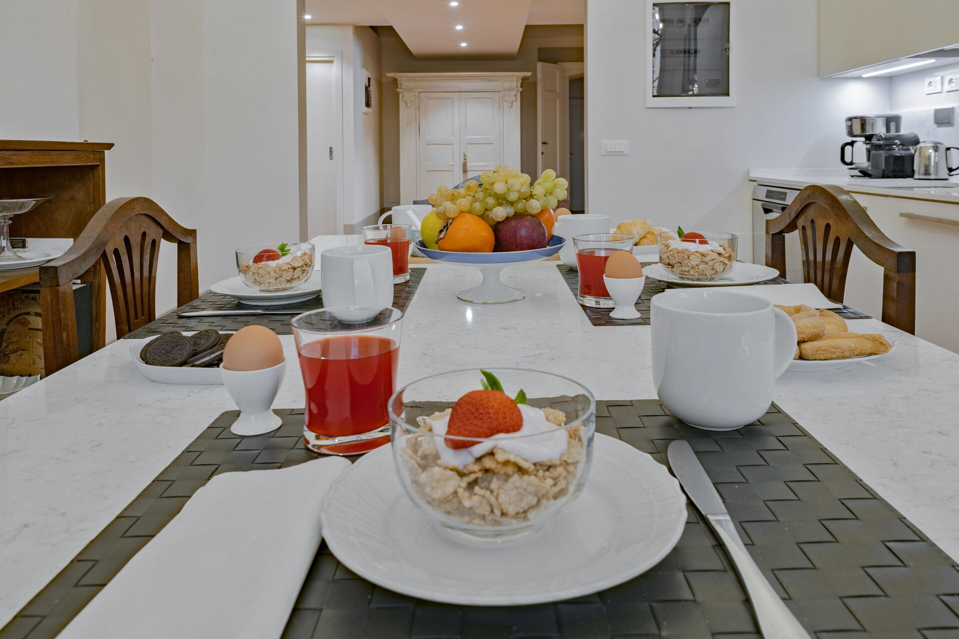 Keuken (14 m2): goed uitgeruste keuken, eettafel (personen: 4), vaatwasser, ijskast, magnetron, kookplaat, oven, broodrooster, italiaans koffiezetapparaat, koffiezetapparaat, airconditioning, rookmelder, co2 detector.
