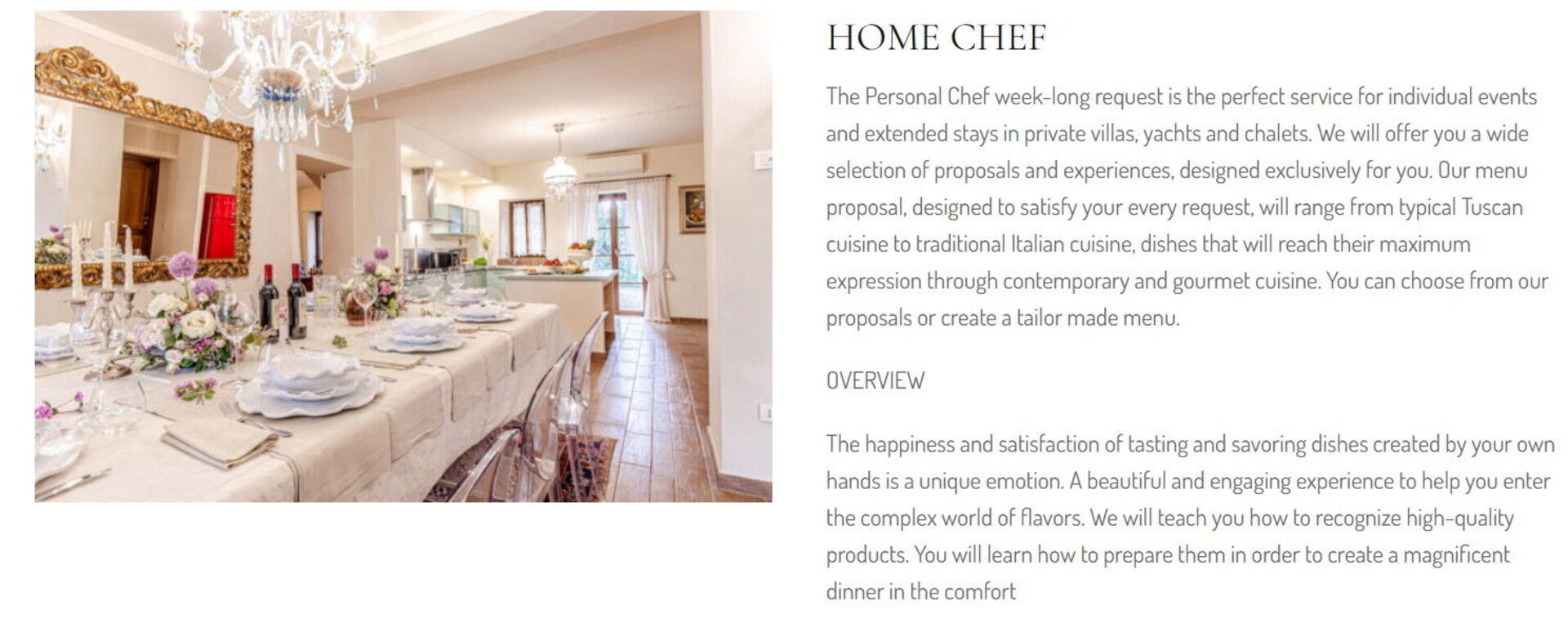 Professionele Chef-Kok - Bent u op zoek naar iets speciaals tijdens uw vakantie? Boek een professionele chef-kok die naar het huis komt om een heerlijke maaltijd voor u te bereiden met lokale producten. De kok zal de maaltijd organiseren al naar gelang uw voorkeuren en dieet-vereisten. De kok zal voorstellen maken voor de verschillende gangen en de wijn. Vraag naar meer details en de bijkomende kosten.