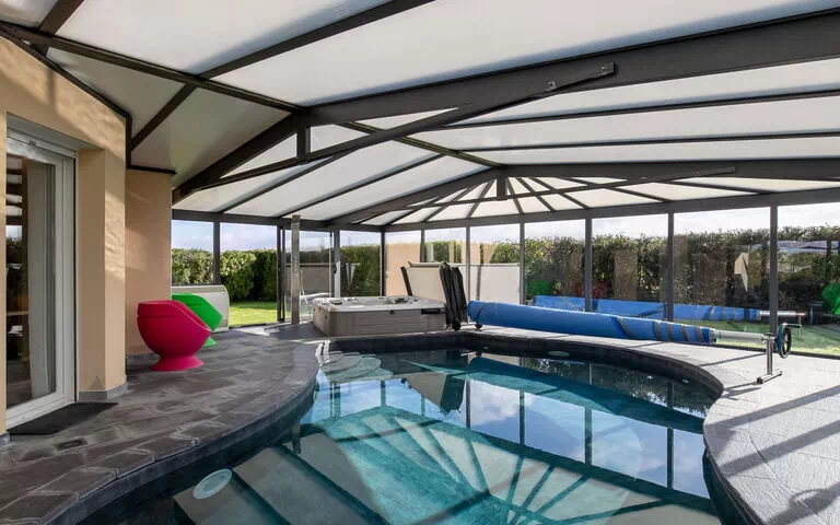 Mooi, gezellige, comfortabele eengezinswoning "Chez David". In het gehucht Keradec, 1.8 km van het centrum van Kersaint-Plabennec, 8.4 km van het centrum van Plabennec, rustige ligging, 13 km van zee, 13 km van het strand. Voor alleengebruik: terrein 1.500 m2 (omheind), verzorgde tuin met gazon en planten, overdekt zwembad verwarmd (8 x 4 m, 170 cm diepte, seizoensgebonden beschikbaarheid: 01.Jan. en 31.Dec.). Hot tub, poolhouse met douche, kinderspeelplaats (glijbaan, schommel). In het huis: fitnessruimte. Parkeerplaats (voor 2 auto's) op het terrein. Winkel 11 km, supermarkt 3 km, winkelcentrum 15 km, restaurant 1.7 km, bar 1.7 km, bakkerij 3.7 km, bushalte 1.7 km, zandstrand "Plage du Moulin Blanc" 13 km, overdekt zwembad 15 km. Jachthaven 15 km, golfterrein (18 holes) 20 km, surfschool 15 km, zeilschool 15 km. Attracties in de buurt: Landerneau 12 km, Brest, Océanopolis 16 km, Plougonvelin, Fort Berthaume 40 km, Pointe de St.Mathieu, Le Conquet 43 km, Saint Renan 25 km, Quimper 73 km.