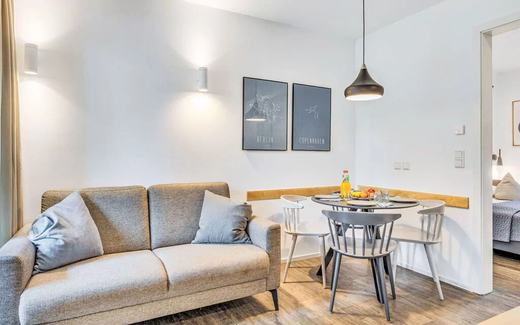 "Seeruhe", appartement 3-kamers 44 m2, op de begane grond. Smaakvol en gezellig ingericht: woon-/eetkamer met Sat-TV (Flatscreen TV). Uitgang naar het terras. 1 kamer met 1 2-pers bed (180 cm, lengte 200 cm). 1 kinderkamer met 1 x 2 stapelbedden (70 cm, lengte 190 cm). Kookhoek (afwasmachine, 2 keramische glas kookplaten, broodrooster, waterkoker, magnetron, elektrische koffiemachine). Douche/WC. Terras. Terrasmeubelen, barbecue. Ter beschikking: Internet (WiFi, gratis). Parkeerplaats bij het huis. Niet rokers woning.
