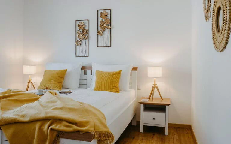 Discover the perfect destination for your next relaxing holiday in Mörbisch am See. This charming holiday flat offers the ideal starting point for an unforgettable holiday, whether as a couple or with the family. Situated on the first floor of a detached house, the flat is also easily accessible with a wheelchair lift, making it a comfortable home away from home.Inside, you will find a bedroom that can be darkened to guarantee peace and privacy. A bathroom with a wellness shower and infrared radiator adds to the feeling of well-being. The entire flat is air-conditioned, ensuring a pleasant room temperature even on hot summer days. For self-catering guests, the kitchen is equipped with a ceramic hob, a filter coffee machine, a kettle and a dishwasher and has everything you need to prepare meals. A washing machine is also available for shared use for a small extra charge.The outdoor area of the flat is a real retreat. The south-facing sun terrace invites you to spend relaxing hours outdoors. Enjoy the tranquillity of the garden, which is equipped with a herb bed, fruit trees and a children's swing and is available for your exclusive use.The location of the flat could not be more ideal. Just 200 metres away is the nearest village centre, including a grocery store, while the beach and the water are a short 2000-metre walk away. Despite its proximity to essential amenities, the location offers a peaceful stay away from the hustle and bustle of everyday life.In this holiday flat in Mörbisch am See you will find everything you need for a relaxing and comfortable stay. Here you can unwind and take a break from everyday life. Please note, however, that pets are not permitted in this flat.