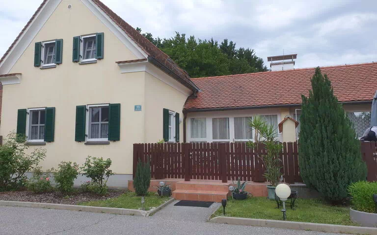 The holiday home is located in a holiday village on the Wagerberg and belongs to the spa town of Bad Waltersdorf. It is surrounded by vineyards and orchards.Our family-friendly, sunny holiday home in the bio-village with terrace is ideal for 4-6 people in summer and winter. Parking spaces only for guests of the Biodorf in front of the Biodorf on the right side of the road. A wonderful oasis of well-being all year round. The house has underfloor heating downstairs and radiators upstairs. It has a new kitchen with all appliances. Dishwasher, microwave, ceramic hob, ice box, coffee machine and cooker. -crockery, cutlery, glasses, bowls etc. The visually separated dining and living area invites you to feel at home in every respect. The path also leads to the quietly situated terrace via the fireplace room and a garden set invites you to linger. The living room and bedrooms are equipped with satellite TV. Various games, colouring books, crayons etc. and books are available for you. Two new cosy benches invite you to take a short break. Both can be pulled out to form a double bed. A storage room with tumble dryer, broom, shovel, bucket, etc. Ice box with freezer compartment and freezer are available. A washing area with WC is located next door. Access to the upper floor. Here are 2 bedrooms, master bedroom with a double bed, mirror, 1 armchair and a satellite TV 2nd bedroom with 2 single beds, a table and 2 armchairs and a TV set. Wardrobe room. Small anteroom with access to the bathroom with shower, washbasin and WC. Towels, tea towels and bed linen are provided. Please do not smoke in the house, only on the terrace, thank you. We look forward to your visit and wish you a relaxing and cosy stay. Dogs are also very welcome. A wifi router can be rented at the reception of the Hotel Wilfinger for a fee per day.From our holiday home you can reach the wellness area in a bathrobe in the main house of the Biodorf or to the hotel in 2 minutes. In the Biodorf and in the hotel you can use the indoor and outdoor pools, whirlpools, saunas, infrared cabins, tea bars, as well as the fitness room in the hotel at any time from 8am to 8pm or 9pm (hotel) free of charge. Beautiful sunbathing lawn with sunbeds are free of charge everywhere in the bio village and in the hotel. Wellness offers can be booked on site for a fee. E.g. various massages, cosmetic treatments, detox wraps, baths or packs. Fango treatments and much more. Childcare free of charge in August.In the immediate vicinity of our hotel there is a golf course with a discount, squash and tennis are free in the Bad Waltersdorf leisure park. Information at the hotel reception. A riding stable, football pitch, public swimming pool with slide, hiking trails. The H2O thermal baths and Blumau are also within easy reach. Cycling excursions are available. (Bikes can be borrowed from the hotel for a fee). The thermal spa is within walking distance. Dance evenings are organised twice a week in the nearby Quellenhof, a 10-minute walk away, and the newly opened Tanzkaffee is open daily.If you would like to visit cities you could drive to Graz, approx. 60 km or Vienna 124 km. Fürstenfeld, Hartberg can be reached in about 15 - 20 minutes by car. The Riegersburg, Manifaktur Zotter (chocolate) and Herberstein Zoo are also interesting places to visit and can be reached in about 30 minutes. Glatz winery, lavender farm (within walking distance) etc. These are just a few examples of what you can find nearby. In the village there is a Spar, a Billa, bakery etc. There are many wine taverns and restaurants within walking distance. In all price ranges, there are menus everywhere.