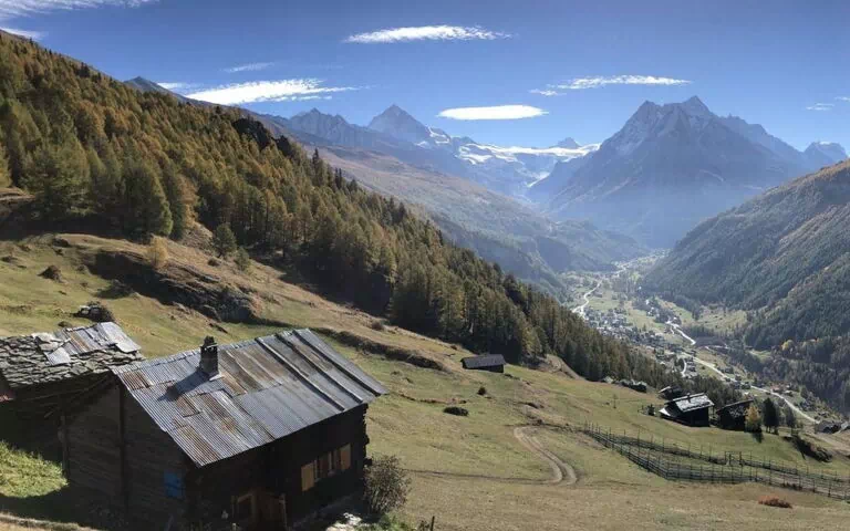Maximaal 1 huisdier/hond toegestaan. True luxury is silence and solitude Your holiday in an authentic mayen dating from 1911. Get back to your roots and recharge your batteries in front of one of the most beautiful panoramas in the Alps. The chalet has recently been renovated, while retaining its old mazot character. The right balance between modernity and simplicity. A real cosy nest for a real rest in the mayen. Volovron: a unique viewpoint over the Upper Val d'Hérens The Volovron mayens are located above Evolène, on a sunny terrace with a magnificent view of all the peaks of the upper Val d'Hérens: Dent d'Hérens 4,171m, Dent Blanche 4,347m, Mont Collon, Pigne d'Arolla, Dents de Veisivi, etc. A carriage road provides easy access up to 200m from the chalet. However, the chalet is perfectly isolated. It stands at an altitude of 1,800 metres and faces due south. Comfort and authenticity, peace and quiet and exceptional views. The chalet is equipped as follows: - Peyo", a magnificent old-fashioned living room perfectly restored with Evolène soapstone, 6-seater table, sofa and armchair. - 2 bedrooms: 2 beds 90*200 and 1 bed 160*200 (duvets 140*210) - kitchen with fridge and gas and wood-fired cooker - WC and shower - terrace with views over the valley Light is generated by solar energy.Mayen to rent in the Valais: back to nature, slower pace of life and digital detox Given the altitude and isolation of the chalet, access is only guaranteed from April to October.