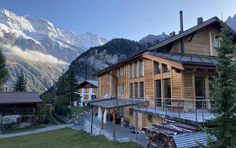 Esther's Guesthouse is located in an old Swiss wooden chalet in the quiet and car-free mountain village of Gimmelwald. Gimmelwald offers beautiful and natural landscapes and is nestled in the unique Jungfrau region. Esther's Guesthouse is just a minute's walk from the cable car station - so you can be in the centre of the Mürren-Schilthorn ski and excursion area in no time at all. Our large family flat offers every luxury: large living room with a huge balcony, kitchen with steamer, oven, dishwasher, induction hob, fondue and raclette set, espresso machine and kitchen table. The three bedrooms can accommodate up to eight people and there is ample storage space everywhere, one room even has an additional balcony.The bathroom has a large shower, bathtub, Closomat, including shower gel, shampoo and towelling.Finally, the living room has another large dining table, flat-screen TV with Swisscom TV, large couch, large balcony and a room-high full-length window front. The perfect flat to enjoy Gimmelwald and the mountain region around the Schilthorn in luxury and with plenty of space. And everything is included: we don't count the toilet rolls, the coffee capsules or the rubbish tokens.Other sports and leisure facilities: Sports centre with indoor pool and spa in MürrenOther living room facilities (living room1): Panorama window, balconyOther bedroom furnishings (bedroom1): Comfort sofa bed for additional children on requestOther kitchen equipment (kitchen1): Induction hob, SteamerSports facilities in the area: Mountaineering, Ice skating, Hunting, Climbing, Mountain biking, Paragliding, Cycling, Rafting, Tobogganing, Alpine skiing, Cross-country skiing, TennisLocation description: Our small, picturesque village is located in the Bernese Oberland at 1367 metres above sea level, on the edge of the UNESCO World Heritage Site "Jungfrau-Aletsch-Bietschhorn". Located in the heart of the Swiss Alps, Gimmelwald was originally a Walser settlement. Today it is one of the last car-free villages in Switzerland. All information about GImmelwald can be found on the Gimmelwald Tourism website.