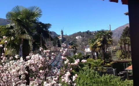 The panoramic flat is located on the 1st floor of Casa Viola and has a lovely balcony. It is in the immediate vicinity of Locarno and Ascona and offers a beautiful panoramic view of the idyllic palm garden and the valleys of Centovalli, Maggia and across to Monte Ceneri and Monte Verita.The flat is equipped to the latest standards, including ceramic hob, dishwasher, white floor tiles and laminate flooring. There is a bathroom with shower and bathtub as well as a separate toilet. The garage is included and belongs to the flat on the 1st floor. The Magggia river and several dream sandy beaches are just a few minutes' walk away. Shops such as the COOP supermarket, bakery, café bar and pharmacy can be reached on foot in 3-5 minutes. The bus station is a 5-minute walk away. The beautiful old town of Losone can be reached in 7 minutes, the three most famous and highly recommended grottos of Losone can be reached on foot through the old town of Losone in 10-15 minutes. Further important addresses, tips for good restaurants and grottos can be found in the dossier, which is available for you in the flat.There is a separate entrance for each flat. The flats are very bright with many windows and are aired and thoroughly cleaned after each stay. The bed linen and towels are washed at 60 degrees.The house can also be booked as a whole - i.e. flat 1st floor and garden flat together. NL-00010105