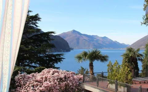 2 1/2 room flat IV A 1st floor with private entrance from outside for 2 persons.1 extra bed on request. Cable TV, mobile telephone possible, WiFi. 2 terraces with dining area + deckchairs, 1 terrace with direct access to the garden (with own fenced garden section/garden path for the dog amidst palm, olive, laurel and camellia trees) and garden gate to the ancient olive footpath to Gandria. Lake view. Car park or garage for a fee. Small living room with air conditioning, sofa bed 0.9x2 m. 1 double bedroom with fan. Cot on request for a fee. Country-style kitchen with dining area for 3 people and with 4 ring hob, dishwasher, microwave with grill, oven, extractor fan, window. Bathroom: bathtub with shower curtain, WC, bidet, infrared radiator, small mirror cabinet, window. Non-smoking flat. The 5-star BARONY LE PERGOLE with 3 villas with 10 luxurious maisonette flats for 1 - 9 persons is located in the exclusive district of Lugano-Castagnola at the foot of "Monte Bre" (the sunniest mountain in Switzerland) at the beginning of the romantic lakeside path to the fishing village of "Gandria" 1.3 km. The residence is situated in a terraced Mediterranean tree garden (close to nature) with palm trees and a wonderful view of Lake Lugano and the nearby mountains; quiet and sunny between a private cul-de-sac and the ancient olive footpath of Castagnola. Covered swimming pool free of charge (4 m x 8 m) from 30 June-Sept. + 140 sqm sun terraces. All flats are tastefully + comfortably furnished. Cots available.The communal indoor pool 4 x 8 m for swimmers aged 6 and over accompanied by an adult - subject to charge - with 140 m2 of sun terraces with deckchairs, parasols and table tennis is open from June to September.table tennis is open from June to September.Subject to official closure due to Covid at any time.Swimming in the lake at 130 m via private road + stairs down to the lake at the communal boat and bathing jetty (free of charge) and at approx. 600 m via ancient olive footpath beach "Lido San Domenico" with swimming in the lake (chargeable) possible.ZOOVER AWARDS 2010 to 2012: "Best holiday home in Lugano" - "Highly recommended"Location description: The city of Lugano is beautifully situated on Lake Lugano south of the majestic Alps amidst lush and lush vegetation due to the mild Mediterranean climate in the southernmost Swiss canton of Ticino. Milan is 70 km away. Lugano is located at the most important north-south railway and motorway junction in Europe. Thanks to the longest car tunnel in the world - the St. Gotthard tunnel - with the accompanying railway line and the San Bernardino road tunnel, Lugano can be reached quickly from the north. Regular flights connect Lugano with the main European cities. Lugano offers a rich cultural programme as well as fun entertainment and recreation. Lugano is also an important banking and commercial centre, combining the best of both worlds, Italy and Switzerland. Its geographical position as a gateway between Switzerland and Central Europe to the north and Italy to the south makes Lugano a highly prized holiday destination and main place of residence. NL-4372