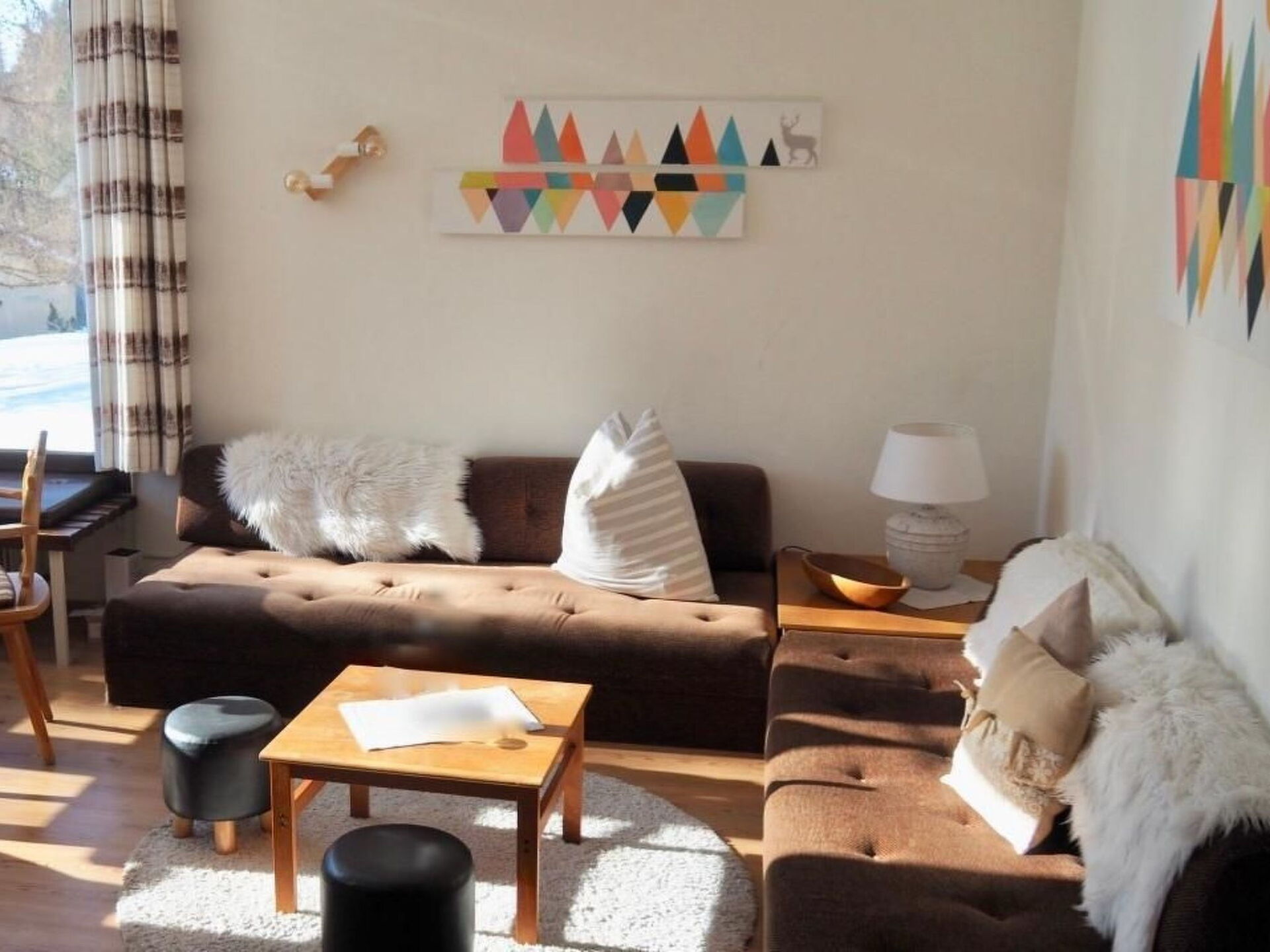 Enjoy unforgettable days in our cosy holiday flat in the heart of the Engadine! Our 2.5-room flat, furnished with fine Swiss stone pine furniture, offers you everything you need for a relaxing holiday. Situated within walking distance of the village centre, you benefit from a quiet and very sunny location with a fantastic view of the Engadine mountains. This place promises a unique stay, whether you are looking for peace and quiet or want to plunge into the adventures of nature.Inside the 53 m² flat, you will find an attractive living/dining room with an open-plan kitchen including a dishwasher, a master bedroom with a spacious pine wardrobe and a small room with a practical bunk bed. For your entertainment and comfort, a TV and WLAN connection are available to make your stay as pleasant as possible.The outdoor area is no less inviting. There is a garage space for your car directly opposite the entrance to the house. The mezzanine floor location provides easy access to the flat and you can enjoy the beauty and tranquillity of the surroundings from here.The location of the flat is perfect for everyone - whether you are looking for peace and quiet or want to be active. There are numerous opportunities for sports enthusiasts in the immediate vicinity: the entrance to the famous Engadin marathon cross-country ski trail is just 500 metres away, and the Engadin High Trail is ideal for hikes directly above the village. Lovers of sport and nature will get their money's worth here, with a variety of options such as cross-country skiing, hiking, climbing and many other outdoor activities. Shops, the train station and culinary delights can be found in the village centre, which is just a few minutes away.Our holiday flat in La Punt Chamues-ch is the ideal place for your next holiday. Experience the idyll of the Engadine, be enchanted by the beautiful view and enjoy the cosiness and comfort of our flat. Here you can switch off, unwind and experience the charm of Engadin culture at first hand. We cordially invite you to become part of this wonderful world and look forward to welcoming you as our guests.