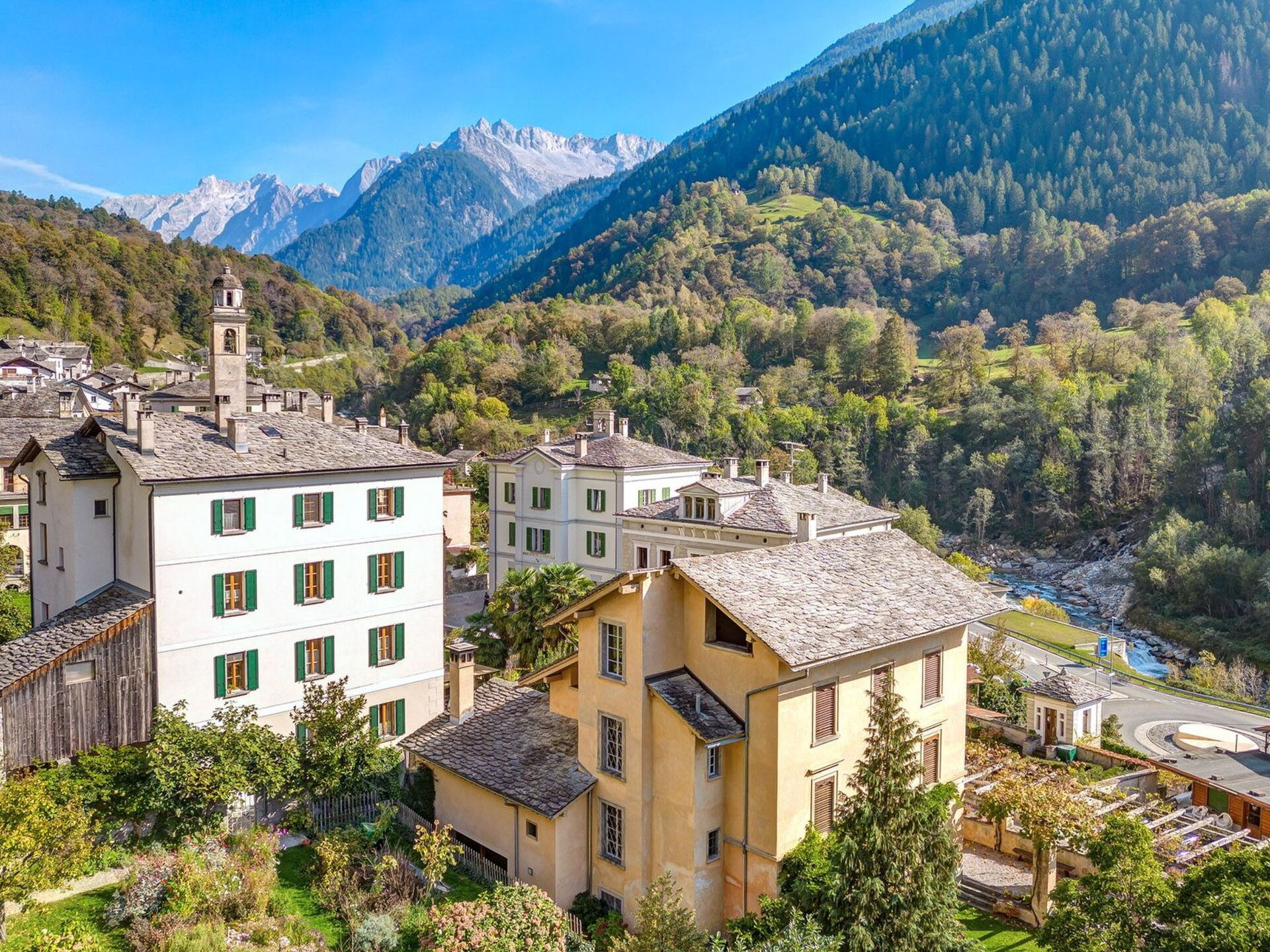 Maximaal 2 huisdieren/honden toegestaan. Casa Pool is a 19th century patrician house located in the picturesque Castasegna, the southernmost village in the Bergella region, directly on the Italian border. The traffic flows through a ring road, so the village centre is as charming as it is quiet. The village has a grocery shop and two bars, one of which has an excellent pastry shop. The post bus stops at two points, one of which is 50 metres from the house. The flat was renovated in 2020 while retaining the original style and consists of a large, lovely living room with a sofa bed for 2 persons, panelled in pine wood and with an original decorated ceiling dating back to 1882, a double room with a fir roof, two small rooms with beds for each person, a completely renovated kitchen and a new bathroom with shower. The flat is located on the second floor. The entrance is at the back of the house. In the garden there is a seating area with a small table and a gas grill.Sports facilities in the area: fishing, mountaineering, climbing, cycling, indoor riding, tobogganing, rowing, downhill skiing, cross-country skiing, surfing, tennis, water skiing. 431804