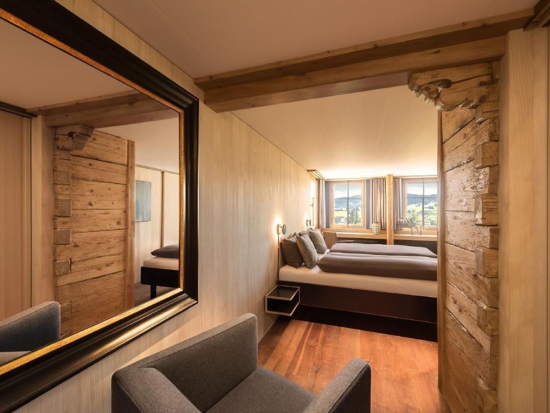 Spending the night here, with a unique view over the Appenzellerland as far as the Säntis, is an experience at any time of year.in the stylishly renovated, listed building on the historic village square of Rehetobel, old building fabric is combined with modernity. The stately five-storey building has served several purposes in its 230 years. Where there is now a pretty pub, the "Gasthaus Dorf5" with a beautiful garden, invites you to linger, there used to be the Rehetobel post office. The upper floors, which were used as a telegraph office and business premises, now house three flats with a high standard of finish. The spacious, light-flooded flat offers a 180-degree view, a beautiful balcony and a spacious living room with a fireplace. The bathroom and bedroom with dressing room and the open-plan kitchen are furnished to a high standard. The natural building fabric with historic parquet floors and selected materials are of a high aesthetic standard. The technical equipment and the special lighting concept leave nothing to be desired, and the central location in the Appenzeller Vorderland is ideal for exploring the Alpstein region, the nearby Lake Constance region and the extremely attractive city of St.Gallen. The flat offers plenty of space for two people and there are many cosy places to relax. Cooking in the modern kitchen is a pleasure - or would you prefer to be spoilt in the "Beizli" downstairs? for more than two people we recommend the flat "Kronbergblick" or "Säntispanorama" in the same house.Other sports and leisure facilities: Garden pool (2 min. walk from the house)Excursion possibilities: Rehetobel is an ideal starting point for many interesting excursions - be it to St. Gallen with its monastery district (UNESCO World Heritage Site) or to the Säntis massif with its mountain railways and hiking trails or to Lake Constance with its cosy little towns and beautiful beaches.Other kitchen equipment (Kitchen1): Dining table with corner bench in the living roomSports facilities in the area: mountaineering, ice skating, golf course, canoeing, climbing, mountain biking, paragliding, cycling tours, indoor riding arena, riding arena / riding facilities, tobogganing, rowing, skiing (alpine), skiing (cross-country), sports centre, squash, surfing, diving, tennis, water skiing, sailingVillage description: Rehetobel is considered the sunniest village in Appenzellerland. Whey spa and textile industry characterise the past. There are two local museums and several themed trails to explore.