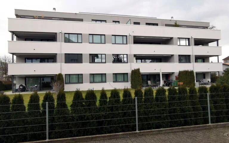 This is a newly built flat in a favoured location. It has a net floor area of 120m2, 3 bedrooms, a large living-dining room of 43m2, a fully equipped kitchen and a bathroom with shower and bathtub. There is also a large balcony.The flat is suitable for groups, families and business travellers alike. It can comfortably accommodate up to 8 people and a small child.The connection to public transport is optimal. 600 metres to the train station and a bus stop next to the house.The accommodationThe residential and commercial building was completed in 2017 and comprises 11 large residential units on 3 floors.The flat has a spacious and practical floor plan. The floor plan can be found in the picture gallery. The house and all flats were built in accordance with the building regulations of the Swiss Disability Discrimination Act, which means that all rooms are wheelchair accessible. The hallway has a width of 120cm.All rooms are wheelchair-accessible and can be turned around. The exact room layout can be seen in the floor plan in the picture gallery.The flat consists of 3 separate bedrooms, a large living/dining room, an integrated open-plan kitchen, a spacious bathroom with shower and bathtub and a beautiful large balcony.All windows are fitted with electric shutters that can be operated at the touch of a button. This means that every room can be darkened.The standard of finishing is very high and the sound and heat insulation is excellent. Room ventilation in all rooms ensures good air exchange and a pleasant indoor climate.Access for guestsThe flat is consistently rented to one party only, so there are no rooms to share with other guests.If you would like to do your laundry, no problem. We live next door and can do the laundry for you for a fee. There is also a laundry room with washing machine and tumble dryer 2 houses away which you are welcome to use free of charge.Excursion possibilities: The company Gätzi Sport, right in the neighbourhood, is happy to lend you bicycles for a fee.Other bedroom furnishings (bedroom 1): Space for an extra bed or camping cotSports facilities in the area: ice skating, golf course, climbing, mountain biking, cycling tours, indoor riding arena, riding arena / riding facilities, sports centre, squash, tennisLocation description: Gossau SG is a pretty little town with approx. 18,000 inhabitants. The holiday flat is located 400 metres from the town centre. Shopping facilities can be found in the immediate vicinity. Cafés, restaurants and various pizzerias, kebab stands etc. are just around the corner.
