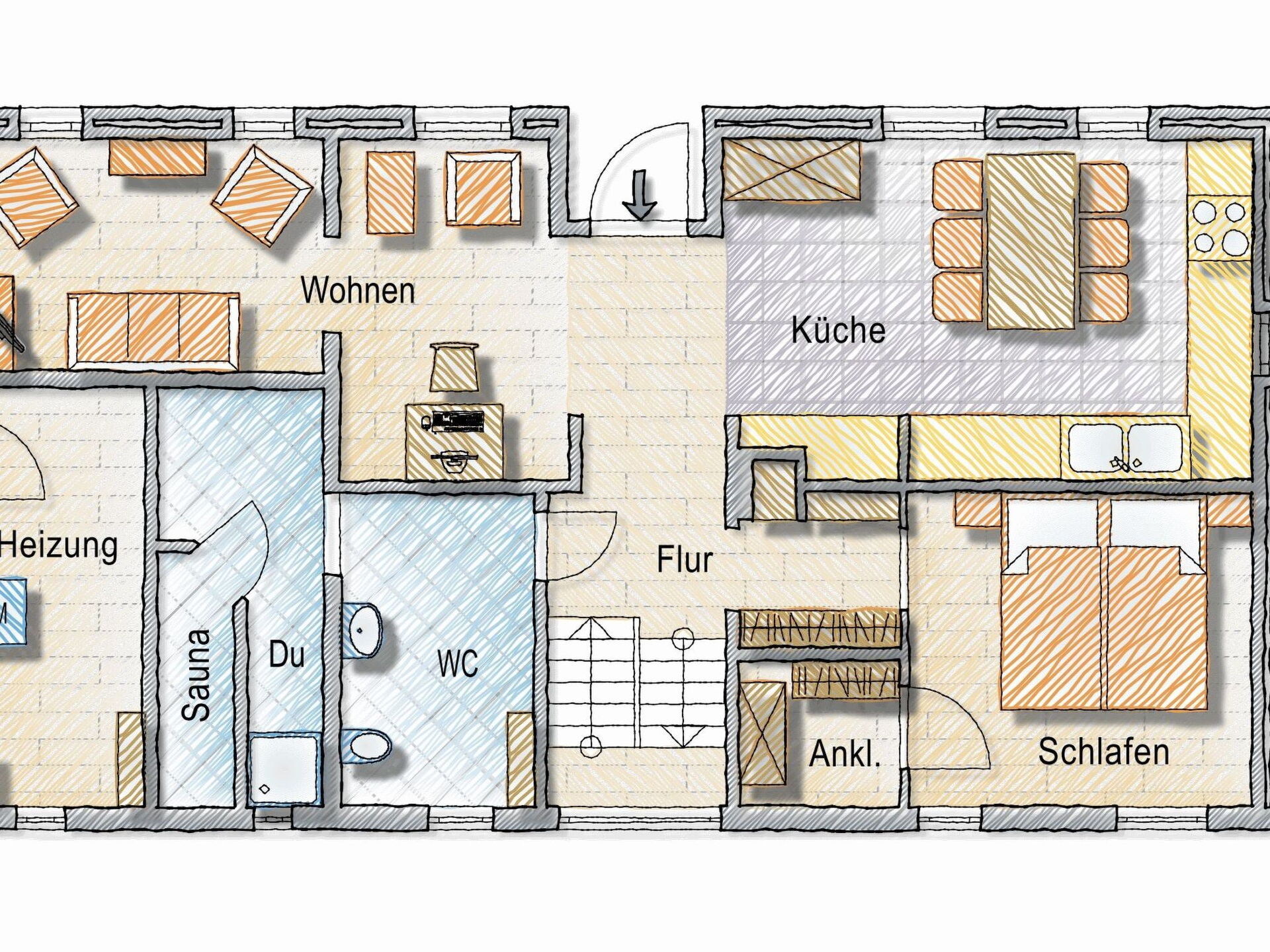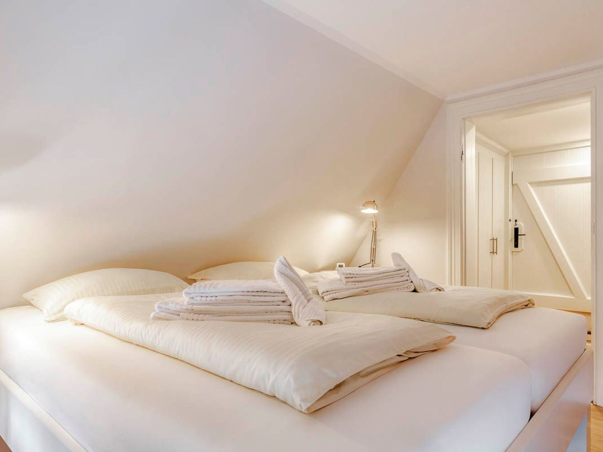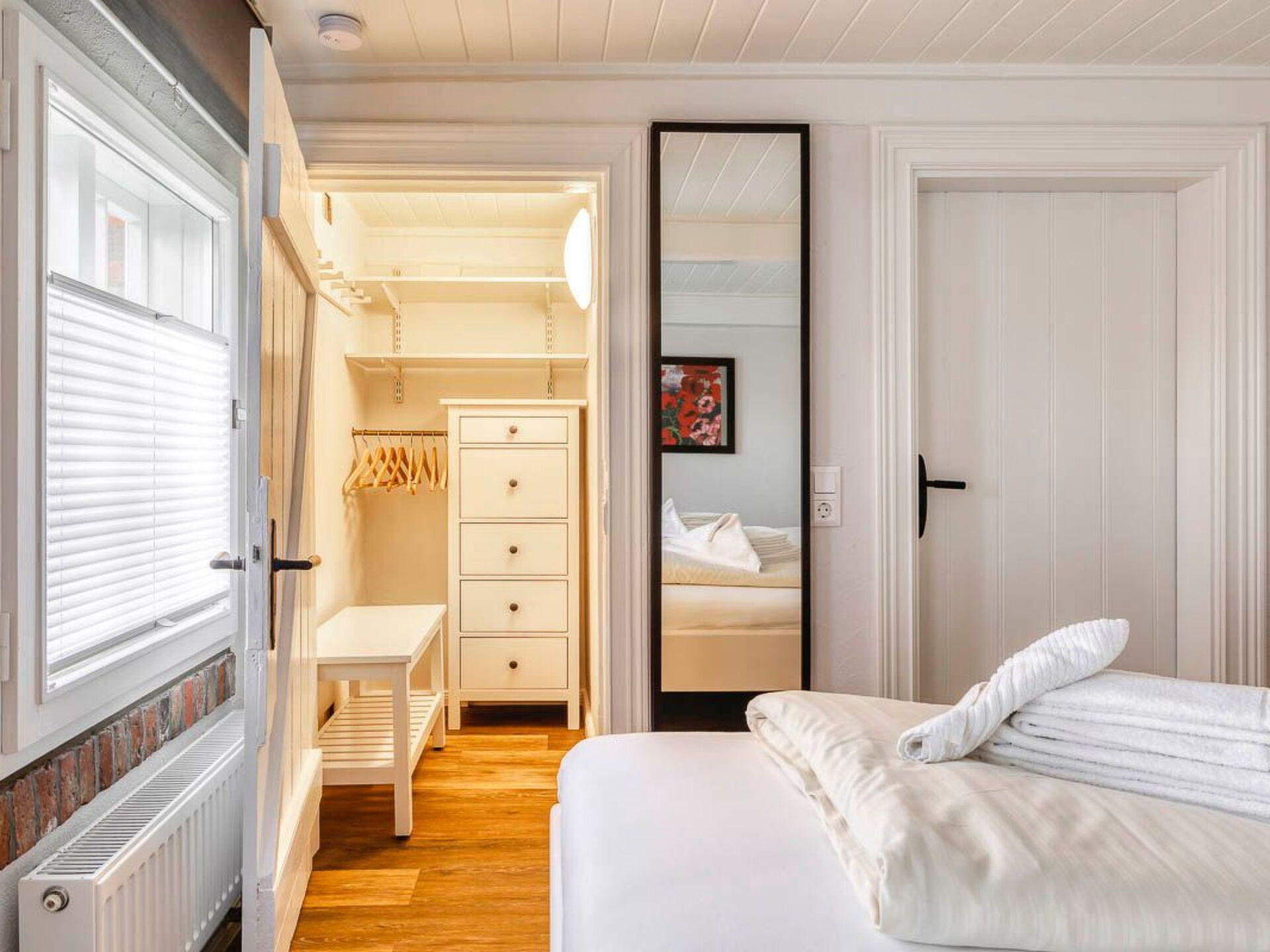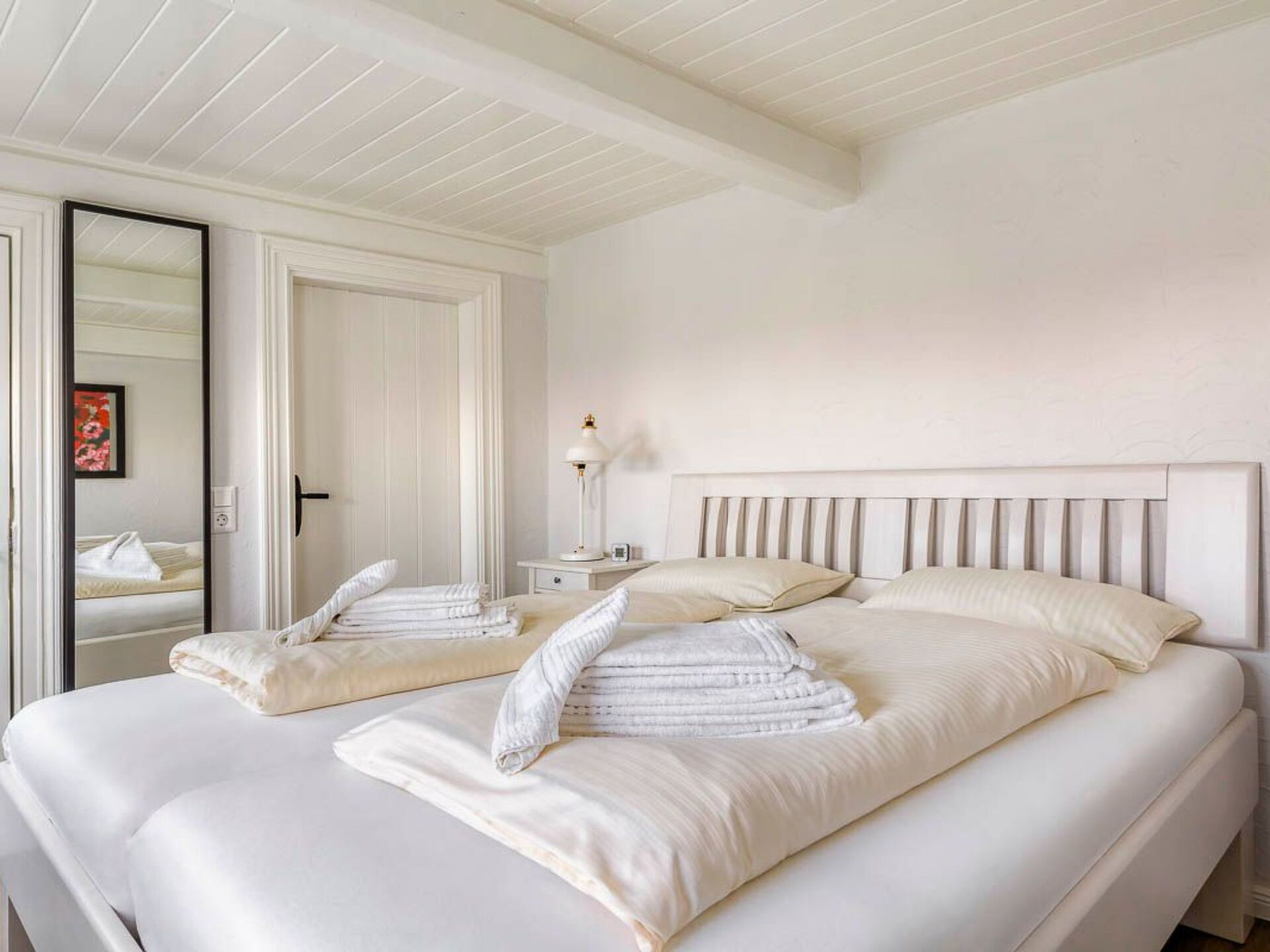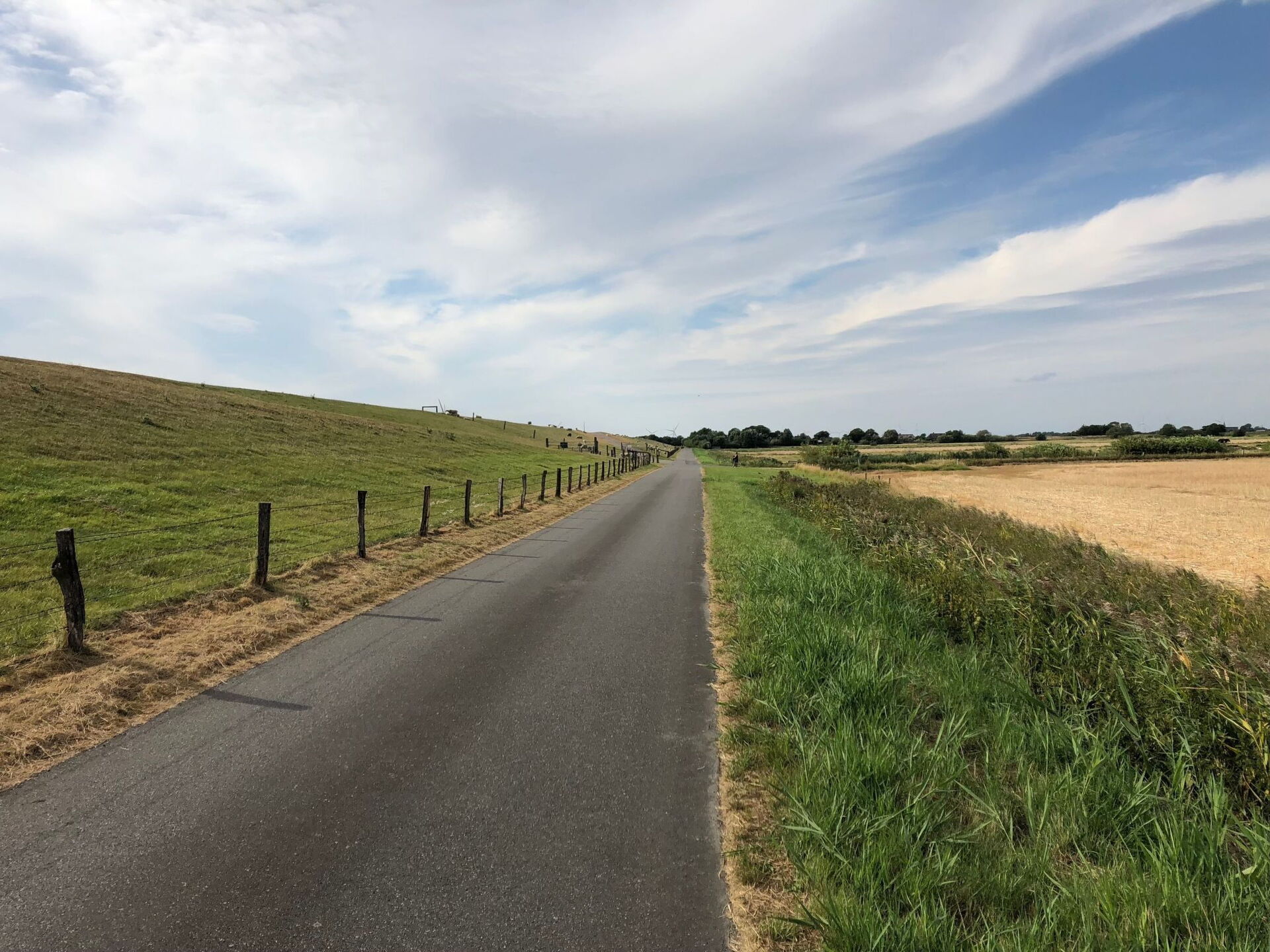 Maximaal 3 huisdieren/honden toegestaan. This idyllic non-smoking thatched house built in 1850 and extensively renovated in 2019 is on the edge of the Gotteskoog in the North Frisian marsh by the tidal flats in Schleswig-Holstein, in the midst of meadows and fields.There is a terrace outside with garden furniture and a thatched garage. The site is on an old embankment in the second row to an outer embankment. The mature trees provide shelter from wind and weather. Dogs can run around freely. The site is enclosed by a fence and is a protection for your dog.Up to six people can be accommodated comfortably in this charmingly furnished holiday house and the house is also suitable for a holiday with a dog. The ground floor comprises a hallway, bedroom, wardrobe, living and dining room, kitchen and a bathroom with sauna. Stairs lead to the upper floor. The hallway forms a little bridge with a lovely view of the ground floor. The upper floor has three bedrooms and another bathroom with toilet and washbasin. The living and dining room provides a dining table, a desk, a Sat-TV, a Bluetooth music system and a telephone for free mainline calls. The kitchen is equipped with an electric stove with an oven, a microwave, coffee machine, pads coffee machine, fridge and freezer, dishwasher, sink, toaster and other everyday utensils. The bathroom has a washbasin, a shower, a toilet, a hairdryer and a sauna. Two bedrooms are each furnished with two single beds (90 x 200cm), extendable to a double bed, and are on the west side and one bedroom with a double bed (180 x 200cm) is on the east side of the house. Note that it has sloped ceilings.Spend your family holiday in Emmelsbüll-Horsbüll and make the most of the attractive location for interesting trips in the region, with easy access to Husum, Flensburg, Friedrichstadt or Tonder in Denmark. Go on a trip to the North Sea islands Anrum, Föhr, the Halligen or Romo, explore the cycling and hiking trails of the Frisian marsh, explore the tidal flats or relax on one of the clean swimming beaches in the region.There is a separate entrance to a utility room with a washing machine and dryer. A highchair, a cot and wireless Internet access are available. There are six bicycles available for free use. The thatched roof ensures a pleasant indoor climate. Gas central heating was installed in 2015. In the first quarter of 2019 an extensive renovation was made.