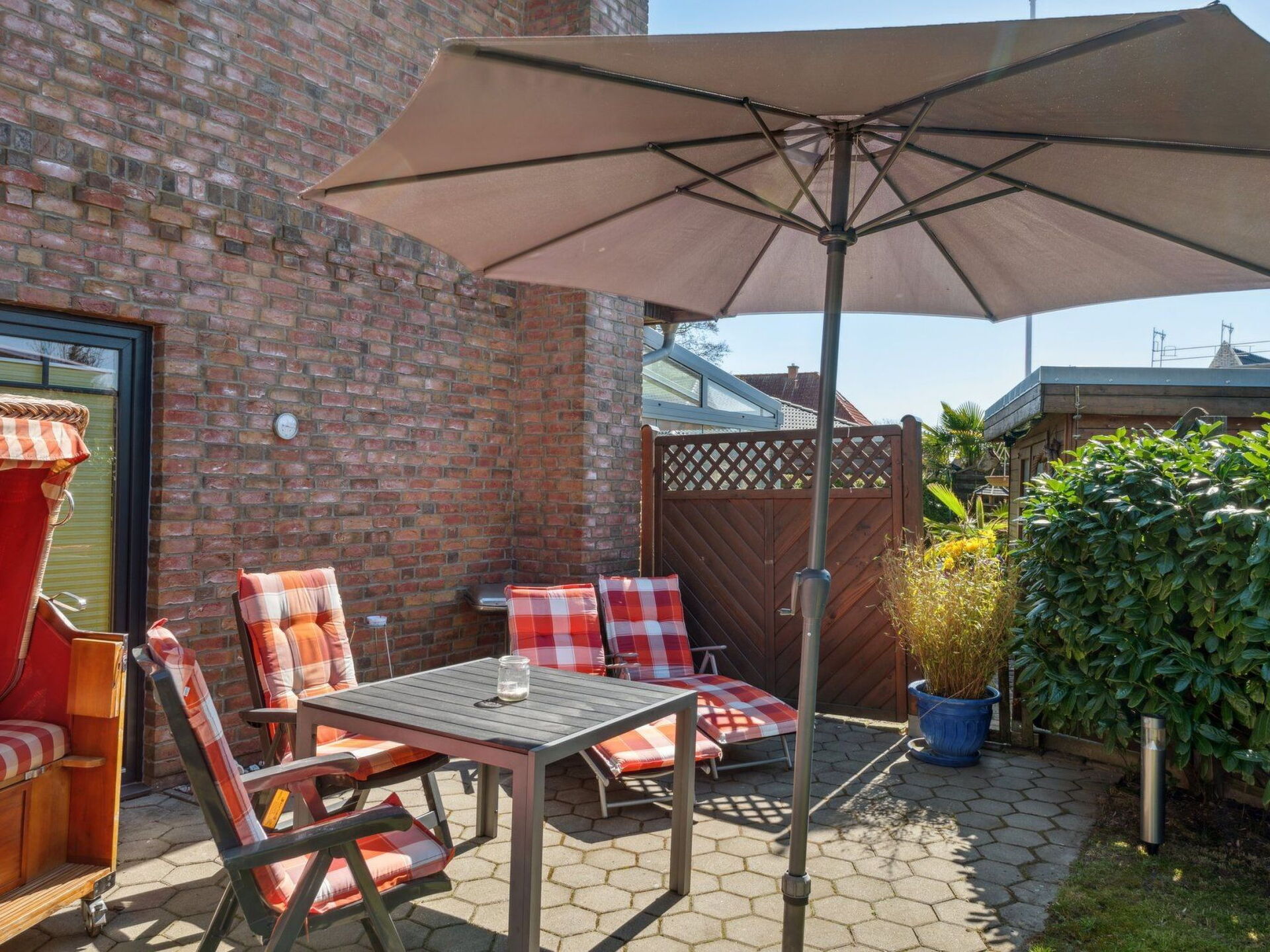 Maximaal 2 huisdieren/honden toegestaan. Beautiful holiday flat for 2 people on the sunny island of Fehmarn in Dänschendorf with garden and terrace. From spring 2023 with new kitchen and new bathroom!Layout: On the 1st floor kitchen, shower room and living room, in the attic bedroom (1 double bed). Kitchen with electric cooker, coffee machine and additional Bosch Tassimo coffee machine, fridge-freezer, microwave, kettle, toaster, egg boiler.Private sun terrace with beach chair, barbecue and garden furniture. In the north-west of the island of Fehmarn. The flat is located in the idyllic holiday resort of Dänschendorf. The natural beaches of Altenteil and Bojendorf are approx. 3.5 km away. Shopping facilities can be found in neighbouring Petersdorf. Modern equipped holiday flat with satellite LCD TV, DVD player and radio with MP3 player connection. You can also use our free Wlan connection.From 2009 an island-wide tourist tax is payable on Fehmarn. From 2012 our flat is a non-smoking flat. Smokers are still welcome, but we ask you to smoke outside only.Attention: The flat is not suitable for disabled persons and children! The flat is located on the 1st and 2nd floor, so the terrace and garden must be accessed from outside.