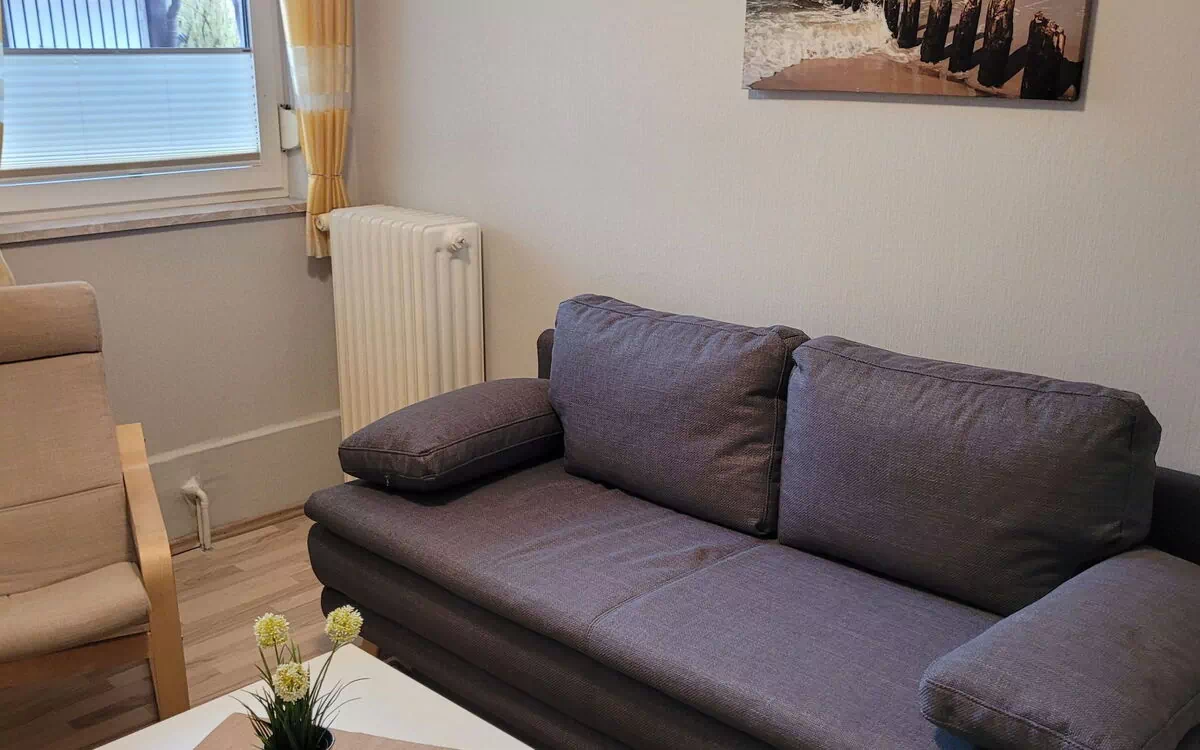 This cosy, renovated holiday flat offers you a relaxed environment to feel at home during your holiday in the North Sea resort of Burhave. It is located in the heart of the popular holiday resort, just a few minutes from the lido and the dyke, making it ideal for enjoying the beach and North Sea as well as discovering the sights in the surrounding area.The flat is designed for two people and offers you all the amenities you need for a relaxing stay. It is located on the ground floor.The holiday flat has a fully equipped kitchen with cooker, oven, coffee machine, water surface and dining area.The living area has a flat-screen TV, a cosy three-seater sofa and a TV armchair.The adjoining bedroom has a double bed with a width of 180 cm.The bathroom is equipped with a shower cubicle, WC and washbasin.The towels are changed weekly.There is a seating area in front of the house. There is also a car park right next to the house.Cycle tours through the countryside on an extensive network of paths.The spa centre, shops, bakery, doctor and pharmacy are all within 200 m of the house.The North Sea lagoon, a 1.8-hectare bathing lake that is independent of the tides, is located directly behind the dyke. The small fishing village of Fedderwardersiel lies just north of Burhave. The shrimp boats set sail from here and return later with their catch.If you fancy a stroll, you can do so on the small promenade in the immediate vicinity of the holiday flat. Charming restaurants in the neighbourhood invite you to linger and turn feasting into an experience.