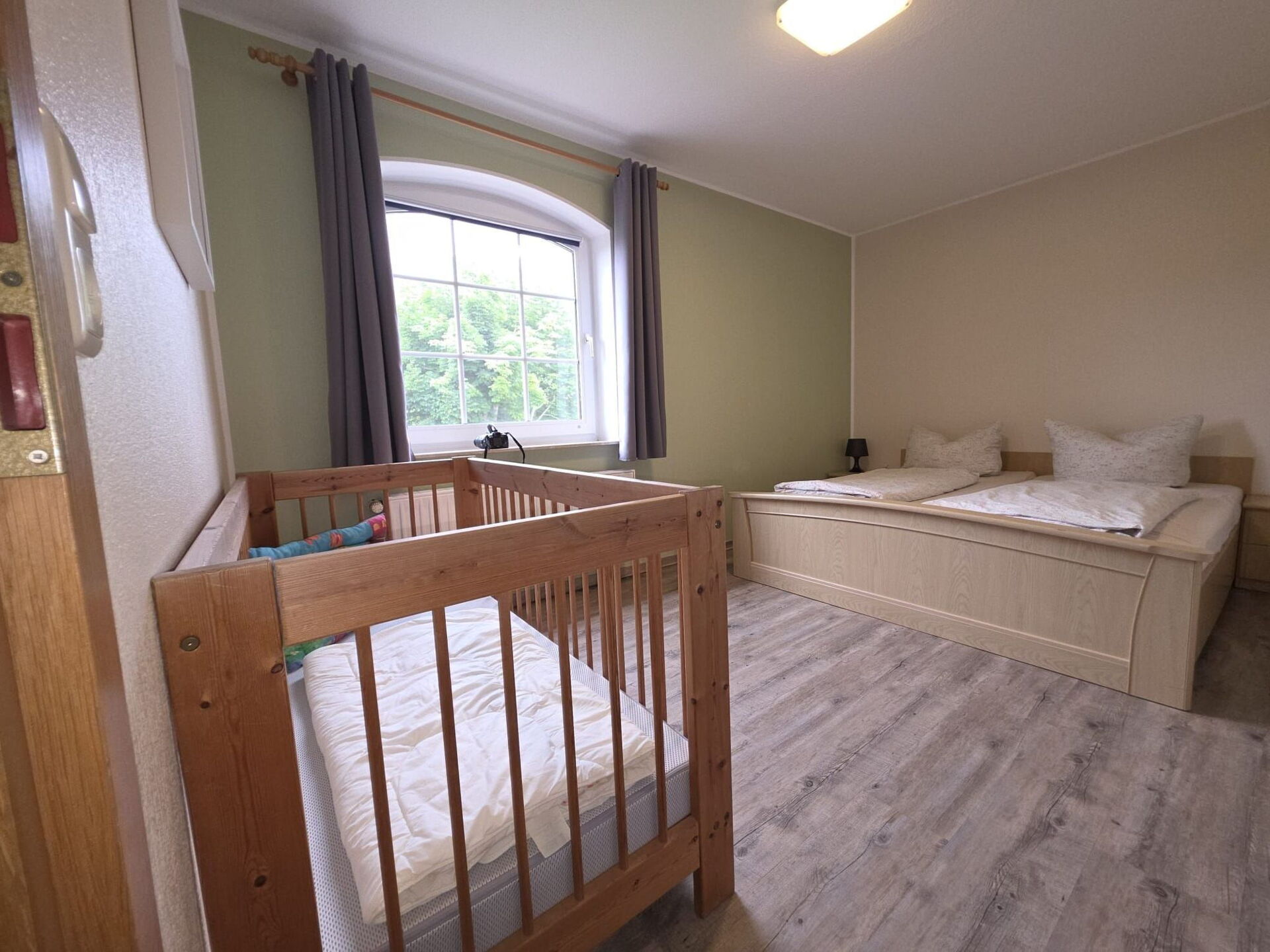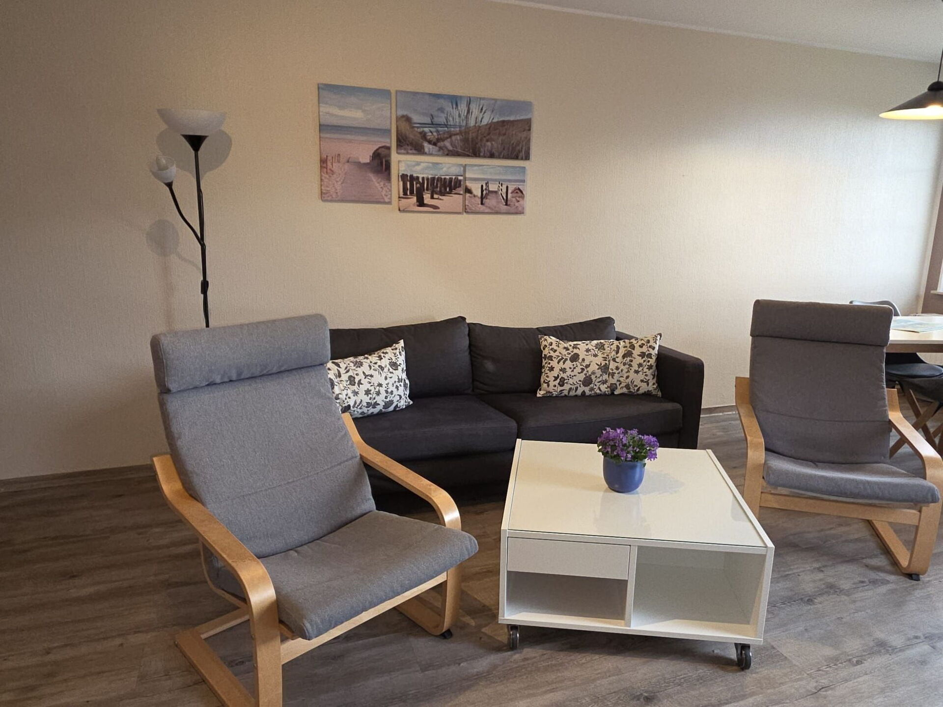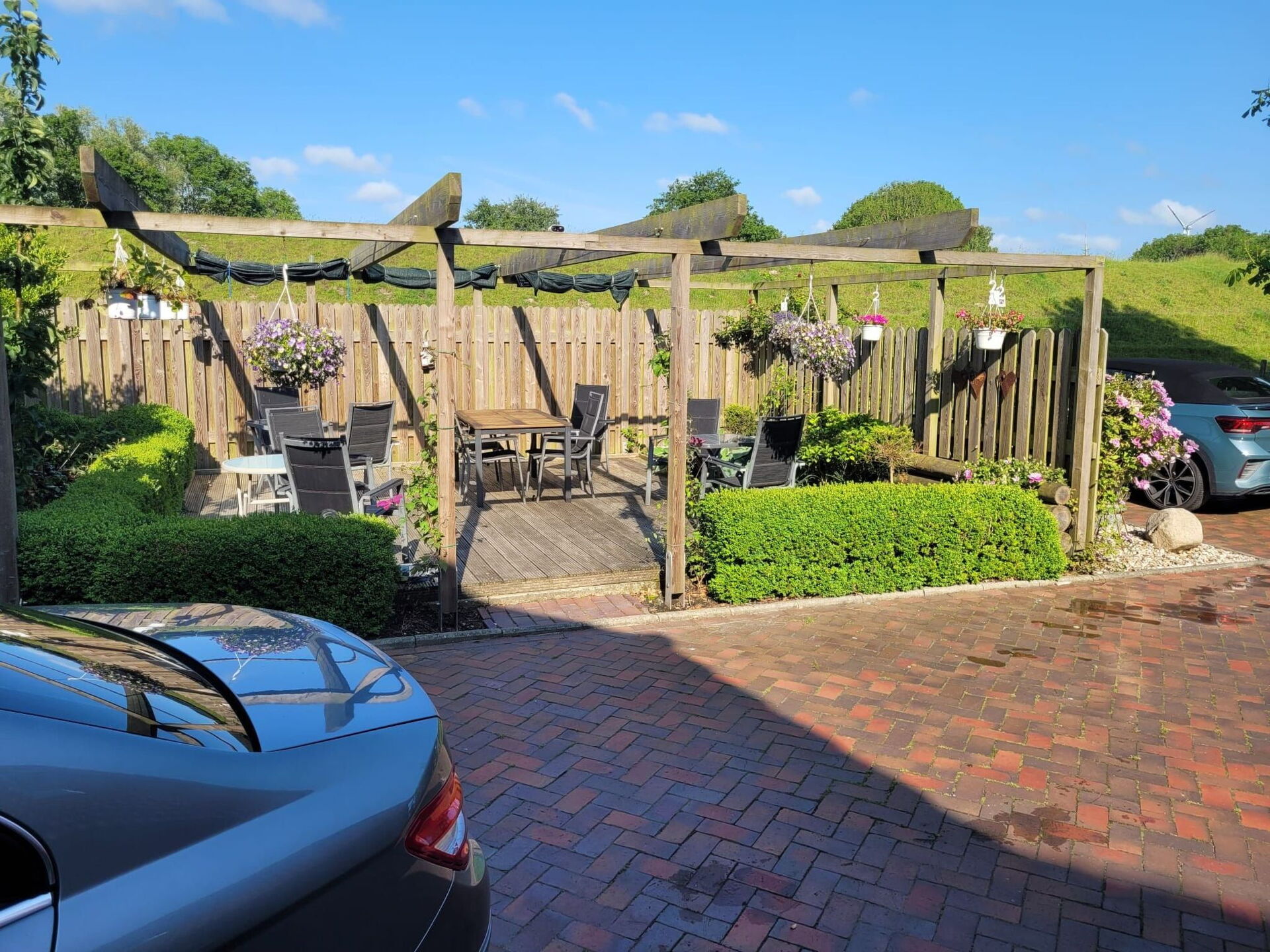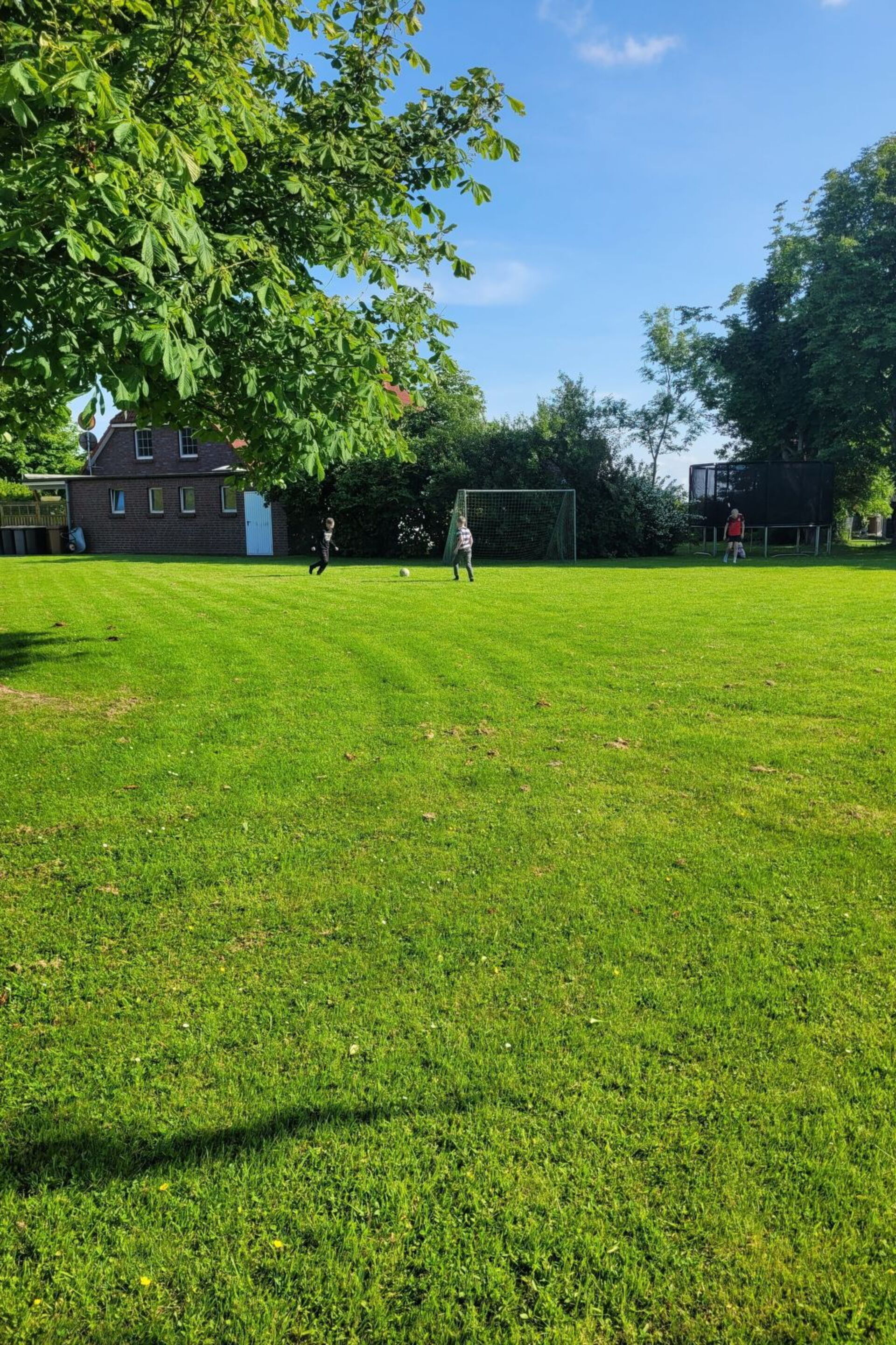 At Ferienhaus Landskron in Friederikensiel, you will stay in a family-friendly holiday flat for up to four people. The holiday home is situated on an extensive plot in a very quiet location directly on the old summer dyke. The large play and sunbathing lawn with numerous children's play equipment is equally popular with our holiday guests and their children. Our large children's vehicle park with go-karts, bobby cars and other children's vehicles for young and old is a particular favourite with the children. So that the children of our holiday guests can play together even in bad weather, they will find numerous opportunities to play in the large open area in the centre of the first floor. The communal terrace is equipped with garden furniture and offers the opportunity to socialise, barbecue and relax. A charcoal barbecue is also available here.There are plenty of parking spaces right next to the house.Our house has central heating. For our holiday guests we offer a washing machine and a tumble dryer for shared use.You will stay in a comfortably furnished, approx. 60 square metre, barrier-free 3-room holiday flat on the 1st floor. The centre of the flat is a spacious living area with an open-plan kitchen and dining area for four people. Here you will also find cable TV and a DVD player. Highchairs for children are available if required.The well-equipped kitchen includes:- Oven- Glass ceramic hob with 4 hobs- Refrigerator with freezer compartment- Dishwasher- Microwave oven- Coffee machine- electric kettle- ToasterTwo bedrooms, each with a double bed and wardrobe, complete the non-smoking flat. On request, we can equip one bedroom with a cot and changing table.The bathroom has a shower, washbasin and WC.Friederikensiel is a small village, 11 km from Schillig and 6 km from Carolinensiel. In Carolinensiel you will find numerous shopping facilities, restaurants and tourist attractions such as the museum harbour and the Sielhafen museum. The Cliner Quelle swimming pool offers water fun even in bad weather. In neighbouring Harlesiel, you can enjoy the sandy beach and the view of the East Frisian Islands from the large terrace of the Wattkieker restaurant on the Harlesiel beach and ferry harbour.The closest restaurant to your holiday flat serves home-style cooking and is located in the neighbouring village of Mederns, 3 km away. You can also do your daily shopping in Hohenkirchen, the main town in the municipality of Wangerland, 6 km away. The large indoor playground Kinder-Spielstadt Wangerland am Wangermeer is popular here.Friederikensiel is surrounded by an extensive network of cycling and hiking trails. You can reach the popular holiday resorts of Harlesiel, Carolinensiel and Neuharlingersiel directly along the dyke to the west and Schillig if you cycle or hike to the east.In Harlesiel and Schillig there are opportunities for mudflat walks and water sports such as surfing and kitesurfing. From Harlesiel Airport you can reach the island of Wangerooge on the shortest flight route in Germany. Of course, you can also reach our neighbouring town of Wangerooge in the North Sea from Harlesiel comfortably, but depending on the tide, by ferry. So nothing stands in the way of a varied and relaxing holiday in our holiday flat.We also welcome motorcyclists.