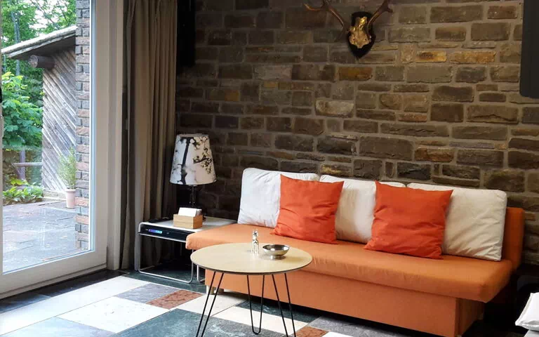 EIFEL REFUGIUM, 2 bed apartmentWelcome to the Kylltal, on the edge of the volcanic Eifel.In free-standing holiday house EIFEL REFUGIUM with its fantastic hillside is the apartment "TERRACE".The house stands on the high banks of the Kyll and is surrounded by an old idyllic garden. In 2015 it has been renovated indoors loving and design-oriented.Just to relax and comfort offering, the apartment "TERRACE" is for 2 people.It is 44 square meters and well equipped with everything that makes life pleasant. Coming over a garden path or the stairs, you enter the apartment through the patio doors. The kitchen has a modern, well-equipped kitchenette with oven and 4 hotplates and refrigerator with freezer. A seating area with sofa bed, fireplace bench and table perfect for leisurely eating and relaxing. A flat-screen TV on the wall where applicable, for entertainment.The bright bedroom with nice ambience has a 180x200 large bed with quality mattresses. The bathroom with window is equipped with a modern sink, tub and toilet. A spacious Extra shower is located on the opposite side of the hallway. The apartment naturally has a utility room with washer and dryer. For car and bicycles, there is a park.Music CDs from classical to modern and reading material from Roman to crime or Eifel picture books, as well as current Eifel info available to them and let the charm of the apartment experience.The large terrace with seating and sun loungers invites you to enjoy the sun all day. Next to the terrace there is a barbecue hut with open fireplace, well suited to extend the evening by the fire, the outdoor fun.In the romantic garden and large outdoor terrain they can stroll or find one of the most beautiful Verweilplätzchen. Be it in the shade on the bench by the pond (1.40 m deep. Caution toddlers!), Or on the lawn with deck chair and umbrella. With a cool glass of Riesling Mosel or fresh Bitburger Pils can be well observed and make plans for the next day of the sunset.Do you want to be active? Just outside the front door, you can leave for short and long walks in the Eifel FORESTS or bike rides on the romantic Kylltal-CYCLE. Or you may make a nice tour to the EIFELMAAREN (25km) to the VINEYARDS AT THE MOSEL (40km) or in the Roman city of Trier (55km)A visit to the KUNSTHAUS ZENDSCHEID with interesting exhibitions of contemporary art is highly recommended.Short descriptionOther : Non-smoking houseShort description 1Number of kitchens : 1SurroundingNearby sports facilities : Bike tours, Climbing, Fishing, Football area, Golf course, Hunting facilitiesRental Facilities : Bicycle rental service, car rentalSurrounding 1Excursion possibilities : Visit the ROMANS CITY TRIER Leisure and indoor swimming pool in Gerolstein Cascade adventure in Bitburg with sauna Eagle and Wolf Park Gerolstein Wild and Erlebnispark DaunLocation description : Zendscheid : 120 inhabitants Chapel in the village center. Playground in the municipal hall. Location -based hotel and restaurant. Kunsthaus with current exhibitions.Other leisure facilities : Cycling , mountain biking , motobiking, hiking.Garden and outdoorGarden facilities : Garden furniture provided, GrillOn-site leisure facilities : SaunaService benefitsService facilities (may incur additional costs) : Bakery service, Child care, baby sitter possible, Cleaning service during your stay, Drinks service, Shopping service before arrival, Transfer service (airport etc)Outside area: Fenced; Garden available; Loggia; Parking spaces: 1; Private parking space; Terrace; Wood grill;House information: 2nd double bed; Bathrooms: 2; Bedroom; Bicycle rental: 0,00 km; Detached building; Floor: 0; Property area: 1800 m²; Total number of floors in the building: 1; Year of construction: 1972; Year of renovation: 2020;Living area: CD-Player; DVD-Player; Fireplace; Iron; Radio; Satellite-tv; Sleeping sofa; TV;Bath/WC: Hairdryers; Shower; Toilet;Kitchen: Coffee capsule machine; Coffee machine; Dishwasher; Electric stove; Espresso machine; Freezer; Freezer; Fridge; Mini-oven; Oven; Toaster; Water boiler;Other: Baby chair; Clothes dryer; Fishing; Forest; Games for adults; Games for children; Heating; Mountain view; Non-smoking object; Owner lives on the property; Vacuum cleaner; Washing machine; Wifi all-inclusive package;Distances (linear, approx.): Canoe for rent: 18,00 km; Distance hiking trail: 10 m; Distance to airport: 55,00 km; Distance to cafés/ restaurants: 0,40 km; Distance to fishing: 0,30 km; Distance to food market: 3,00 km; Distance to golfcourt: 12,00 km; Distance to lake: 15,00 km; Distance to minigolf: 18,00 km; Distance to railway station: 0,80 km; Distance to river: 0,20 km; Distance to swimming pool: 8,00 km; Next location: 0,10 km;Short descriptionOther : Non-smoking houseSurroundingNearby sports facilities : Fishing, Golf courseRental Facilities : Bicycle rental serviceGarden and outdoorGarden facilities : GrillService benefitsService facilities (may incur additional costs) : Child care, baby sitter possible, Cleaning service during your stay, Transfer service (airport etc)Outside area: Fenced; Garden available; Grill; Loggia; Parking spaces: 1; Private parking space; Terrace;House information: 2nd double bed; Bathrooms: 1; Bedroom; Bicycle rental: 18,00 km; Detached building; Floor: 0; Property area: 1800 m²; Year of construction: 1972; Year of renovation: 2019;Living area: CD-Player; DVD-Player; Fireplace; Iron; Radio; Satellite-tv; Sleeping sofa; TV;Bath/WC: Hairdryers; Shower; Toilet;Kitchen: Coffee capsule machine; Coffee machine; Dishwasher; Espresso machine; Freezer; Freezer; Fridge; Mini-oven; Oven; Toaster; Water boiler;Other: Baby chair; Clothes dryer; Fishing; Forest; Heating; Mountain view; No group bookings; No youth groups; Non-smoking object; Owner lives on the property; Vacuum cleaner; Washing machine; Wifi all-inclusive package;Distances (linear, approx.): Distance hiking trail: 20 m; Distance to airport: 55,00 km; Distance to cafés/ restaurants: 0,40 km; Dista