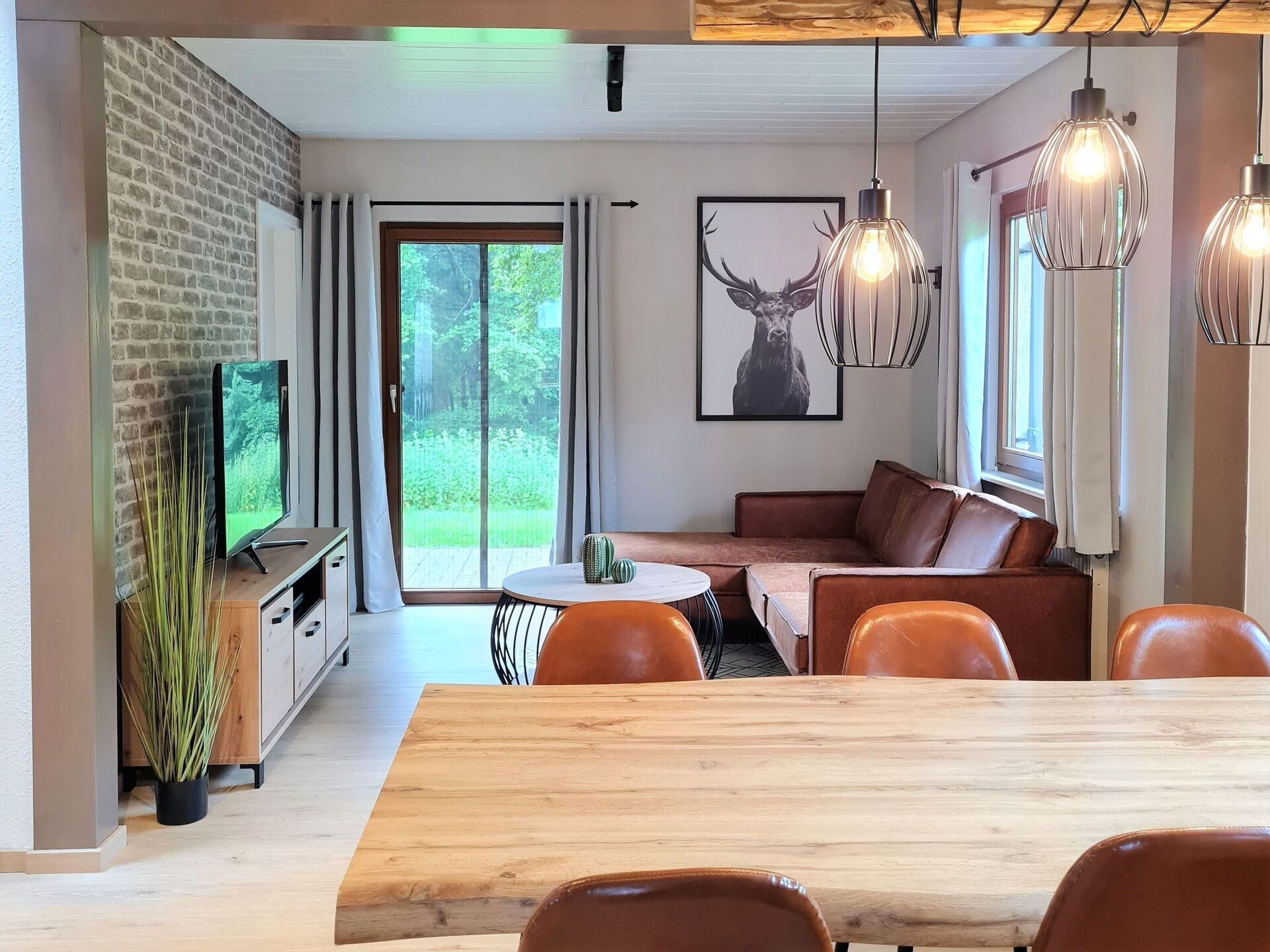Discover the completely modern renovated holiday home Skoft, located in an idyllic holiday home park in the Seepark Kirchheim, in the middle of the North Hessian Highlands. This charming holiday home offers the perfect combination of modern comfort and natural surroundings. With its lovingly furnished interior and direct view of the neighbouring forest, the holiday home is an ideal retreat for nature lovers and families.The interior of the Skoft holiday home is at its best: freshly renovated and furnished with care, it promises an inviting and cosy ambience. Here you will find everything you need for a relaxing holiday. The modern facilities leave nothing to be desired and provide the ideal setting to relax after a day of adventure in the region.Outside the holiday home, a beautiful garden invites you to linger. Surrounded by its own lawn and with a direct view of the forest, the garden offers plenty of space for children to let off steam and discover nature. The holiday home plots at Seepark Kirchheim are perfectly integrated into the natural landscape and allow an undisturbed retreat into the peace and beauty of nature.The area surrounding the Skoft holiday home is characterised by the picturesque North Hessian Highlands, which, as part of the Red Riding Hood region, offers a wealth of cultural and natural experiences. Discover well-developed hiking and cycling trails that lead through the charming landscape, visit museums that offer insights into the history of the region or explore the half-timbered old town of Bad Hersfeld. With its location in the Kirchheim lake park, the holiday home also offers access to a wide range of leisure activities, from water sports on the nearby lake to hiking trails.Make Ferienhaus Skoft your next holiday destination and enjoy an unforgettable time in one of Germany's most beautiful regions. Here, where modern living comfort meets the magical surroundings of the North Hessian Highlands, countless opportunities for relaxation and leisure activities await you. Book your stay now and experience a holiday that you will remember for a long time to come.