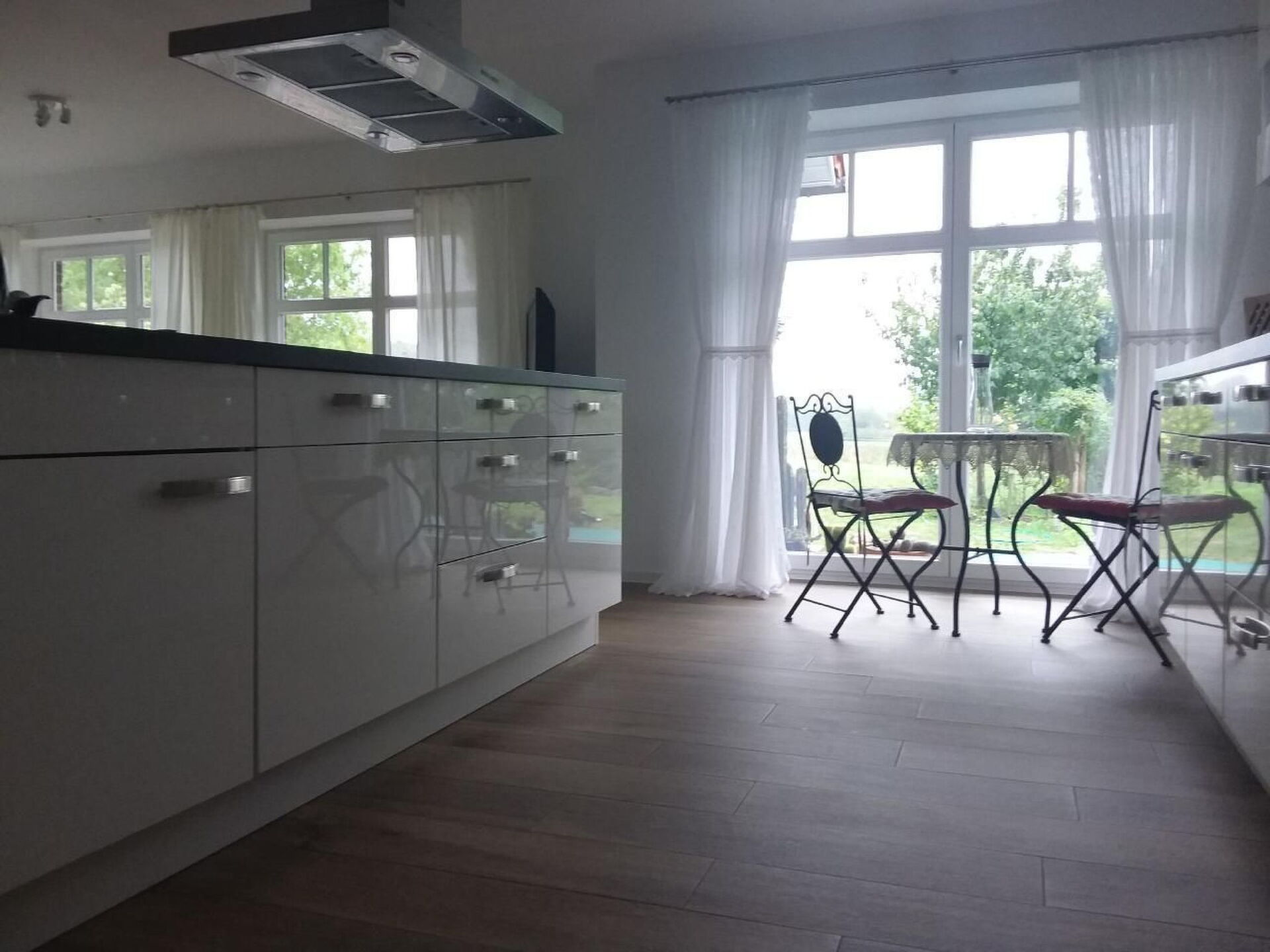Discover the perfect holiday home in the picturesque setting of the island of Rügen! In our newly built holiday home, nestled in the rural idyll of meadows and fields, we promise you an undisturbed, comfortable and affordable break. Situated in a central, detached family home, our 90m² ground floor flat in a semi-detached house offers the perfect basis for pure relaxation. Situated at the end of a quiet cul-de-sac, this is the ideal retreat for your well-earned break.Inside the flat you will find a modern island kitchen that flows seamlessly into a spacious living room, furnished with great care and quality. The generous south, east and west-facing windows ensure that the room is always flooded with light and offers you enchanting views of the greenery. A separate bedroom and a bathroom offer enough space for up to four holidaymakers, while the living room can be converted into a further sleeping area if required. With its modern furnishings and thoughtful decor, a relaxing stay is guaranteed.The extensive outdoor area of around five thousand square metres invites you to play, relax and linger. The garden and the south-facing terrace are at your complete disposal, from where you can enjoy the view of paddocks and the evening twilight. The direct proximity to nature promises sightings of deer, hares and foxes with a bit of luck. Dog owners will be delighted to hear that four-legged friends (dogs only) are also very welcome here.The area surrounding our holiday flat offers countless opportunities for exploration and excursions. From this central location, attractions such as Stralsund, Sassnitz, the chalk coast, Glowe and Cape Arkona are within easy reach. Rügen delights with charming villages and towns, unique natural landscapes, national parks, nature reserves and unspoilt beaches - a true paradise for cyclists thanks to an excellent network of cycle paths and a special cycle bus and train service for any breakdowns.Experience your dream holiday in the combination of modern living comfort and the unspoilt beauty of Rügen. Our holiday flat is your ideal starting point, whether you are looking for pure relaxation, want to explore the diverse island world or simply need a break from everyday life. Book now and make your dream of an unforgettable holiday come true.
