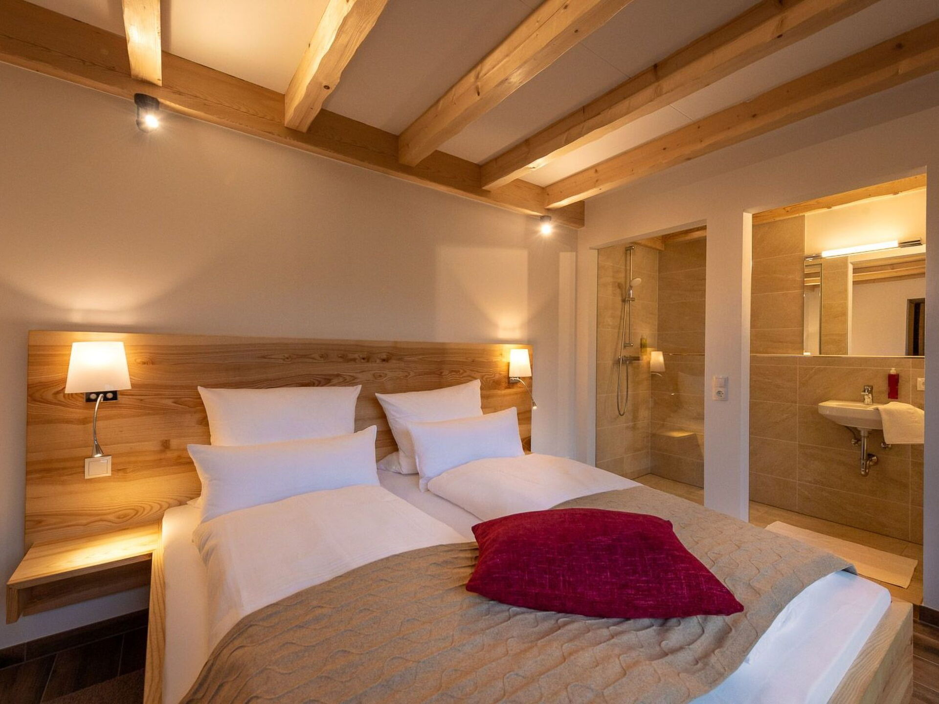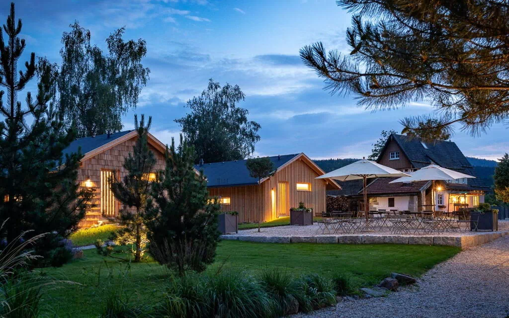 Simple and clear - on the outside, in the tradition of the huts for people who have called the forest home for centuries and used it to earn a living - regionally located - wood as the central building element, inside and out - with high value for the present.107 square metres offer space for your time at FORSTGUT. Designed for up to 4 people, we offer you space to relax and breathe deeply with your own sauna in the bathroom and an outdoor hot tub on the covered terrace. The architecture, which focuses on valuable visual axes, opens up the space to the nearby estate forest. Nature in view, whether from the sauna, the bedroom or the cosy couch - always close to the estate forest, the seasons and yet surrounded by a room with a large kitchen, a crackling open fire and cosy reading corners. We invite you to the "Room for VALUABLE TIME - FORSTGUT von Schnurbein"107 square metres offer space for your time at FORSTGUT. Designed for up to 4 people, we offer you space to relax and take a deep breath with our own sauna in the bathroom and an outdoor hot tub on the covered terrace. The architecture, which focuses on valuable visual axes, opens up the space to the nearby estate forest. Nature in view, whether from the sauna, the bedroom or the cosy couch - always close to the estate forest, the seasons and yet surrounded by a room with a large kitchen, a crackling open fire and cosy reading corners. We invite you to the "Room for VALUABLE TIME - FORSTGUT von Schnurbein"The forest hut has its own outdoor whirlpool and an outdoor sauna. Both can only be booked in combination. The price depends on the number of persons and the length of stay. The calculation is based on the number of people staying overnight. Please enquire about the price when booking!At the Forstgut you only experience "home-made" - the programme is determined by nature and your desire, mood and creativity. Let us inspire you to enjoy a completely normal holiday.Golfing, hiking, horse riding, cycling, archery, mushroom picking, observing animals, picking flowers, taking photos, relaxing, savouring, taking a deep breath, having fun, barbecuing, picnicking, playing badminton.... Be human. Ski areas in the immediate vicinity: The two ski areas Rusel (with Haussteinlift) and Geißkopf (Geißkopfbahn, Parallellift, Nordhanglift, Riegellift, Forsthauslift and Babylift) are each 10 to 15 minutes away and are operated by the Geißkopfbahn. The main advantage for skiers is the introduction of electronic reading systems, so that in future one lift ticket will be valid for both ski areas. The Geißkopf ski area (1100 m) with 6 lifts and 8 runs of varying difficulty has 4 ski and snowboard schools on site. A fun park completes the offer. The Forsthaus downhill run, Geißkopf men's downhill run and Nordhang downhill run are covered with artificial snow. A floodlight system on the 1150 metre-long main run allows skiing on the Geißkopf on Wednesdays, Thursdays and Fridays until 9.30 pm. Floodlight skiing is also possible on the Rusel on the same days. Golf courses: 10 minutes away is the 18-hole course of the Deggendorf Golf Club on the plateau of the Rusel Pass at an altitude of 840 metres. A driving range and a 3-hole practice course are available. In the season from April to November, you can enjoy the beautiful scenery from the terrace of the clubhouse after your game. The Oberzwieselau golf course is located in a hilly park landscape about 20 kilometres away. The clubhouse with its terrace forms the centre of an 18-hole championship course harmoniously embedded in the landscape. Bavarian Forest National Park: The Bavarian Forest National Park is only 25 kilometres away. It was opened in 1970 as the first national park in Germany and protects a unique forest and low mountain range landscape on the border with the Czech Republic. Expanded in 1997, the national park now covers an area of over 24,000 hectares. Almost the entire area of the national park is covered by extensive forests, which today are uniquely left to develop largely uninfluenced by man. The action of natural environmental forces and the undisturbed dynamics of the biotic communities are guaranteed. In the national park you can experience unspoilt nature in an impressive way. It offers ideal conditions for exploring the natural processes in nature and learning about nature.