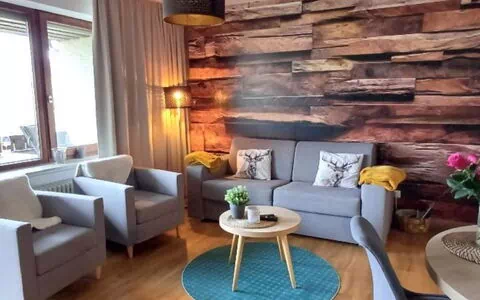 Kom binnen: Na een drukke dag wacht onze nieuwe infraroodsauna op u in de grote entree, met 2 zitplaatsen, lichttherapie en de mogelijkheid om uit te schakelen op zachte muziek. Na de sauna kun je meteen naar buiten gaan op het grote balkon of jezelf opfrissen in de nieuw ontworpen badkamer met inloopdouche. De woonkamer (met slaapbank indien gewenst) maakt indruk met het warme kleurenschema van de vloer en de muren. Er is ook een gezellige eethoek met een ronde tafel en 4 comfortabele stoelen. Verder heb je de mogelijkheid om tv te kijken, speciaal hiervoor hebben we een wand laten bouwen waarin niet alleen de grote tv staat maar ook 2 speakers, deze zijn met Bluetooth. De slaapkamer heeft een groot boxspringbed (180x200 cm) in bewezen hotelkwaliteit, evenals voldoende kastruimte. Het grote balkon, dat over de hele lengte van het appartement loopt, nodigt uit om te ontspannen. Je kunt er ook yoga beoefenen. Het uitzicht is op de Klausenlift en de bergen.