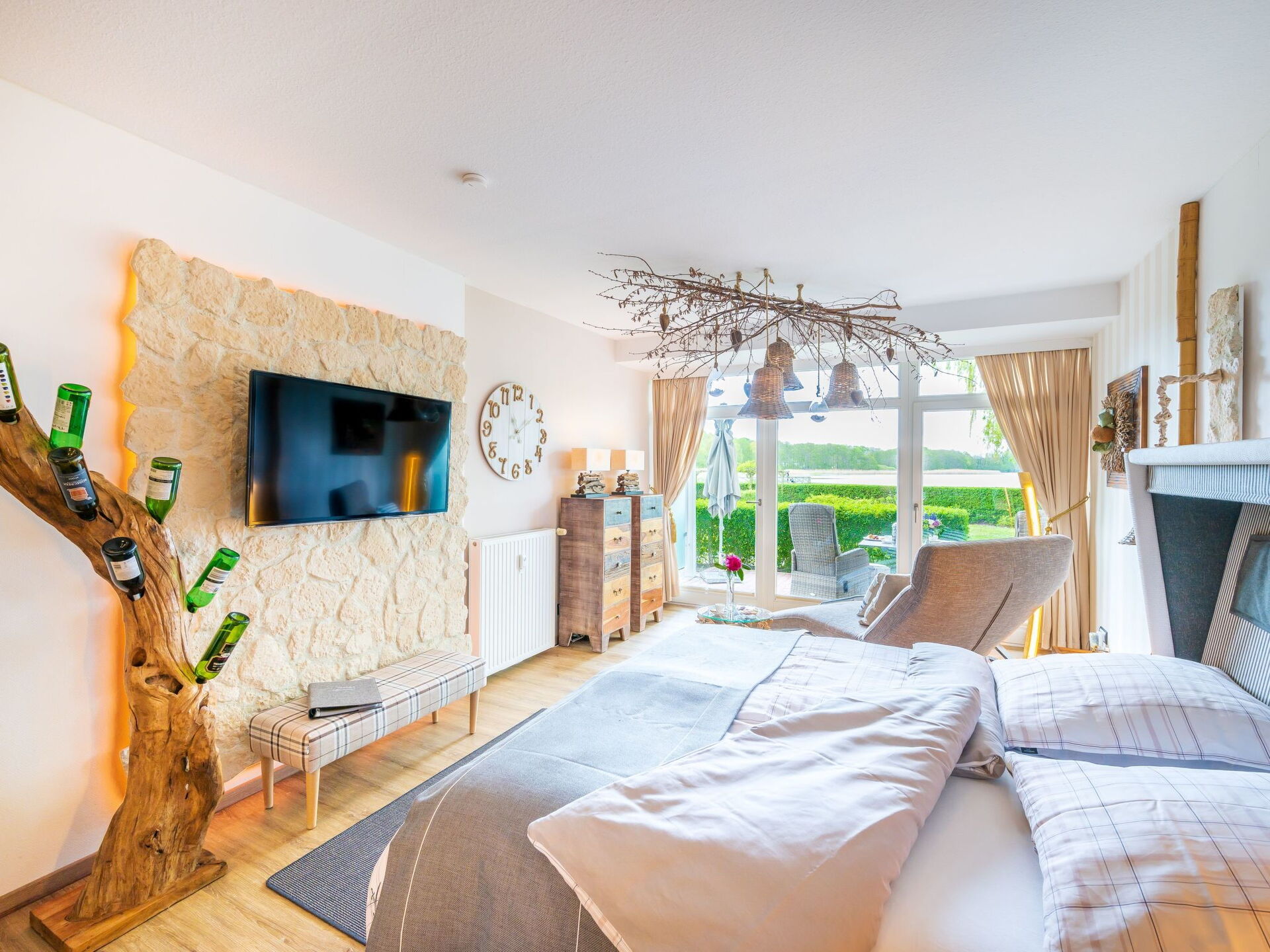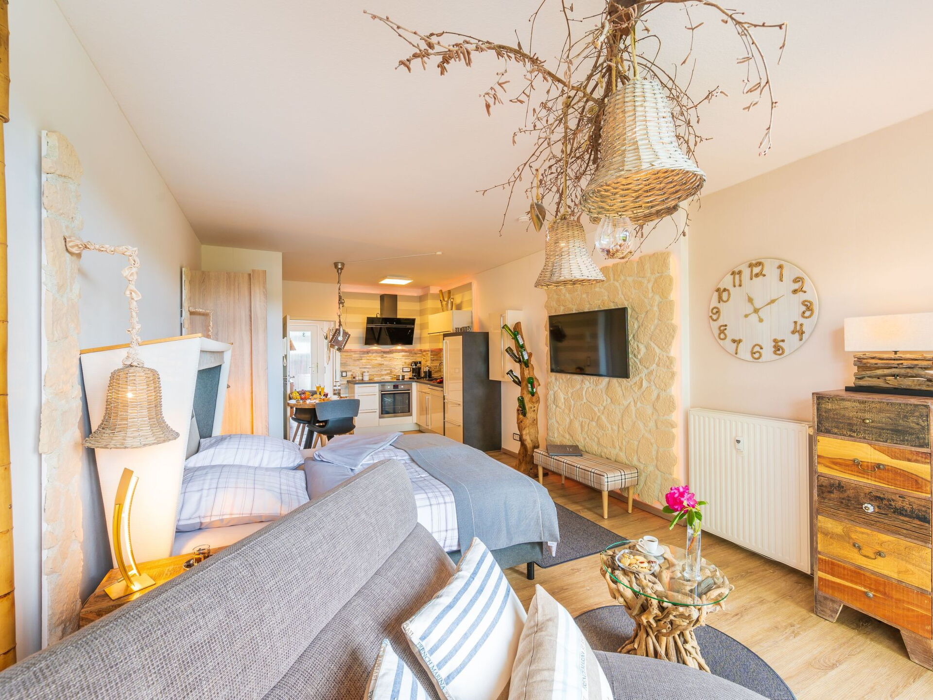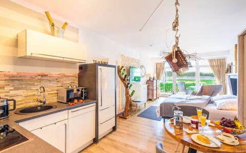 The beautiful Schmachter See lake right on your doorstep and right in the centre of Binz! Enjoy the marvellous view of Lake Schmachter and the Park of the Senses from the well-equipped Seeblick holiday flat! Take a walk along the newly created lakeside promenade or use the free hire bikes for short cycle tours through the beautiful countryside!The south-facing terrace offers sunshine from 10am and a fantastic view of the lake and the surrounding area. In the evening, you can marvel at the beautiful sunsets from the terrace with a glass of wine.Laundry package included | made-up box-spring bed | 2 rental bikes included | south-facing terrace | WiFi included | free car park availableThe exclusive and lovingly furnished holiday flat Seeblick is flooded with light. It has a living room with electrically adjustable seating, a Sansibar box-spring bed (180 x 200 cm), a 46-inch LED TV, cable TV, digital radio and free WiFi. You have a beautiful view of Lake Schmachter from the entire living area.Adjacent to the living area is a very well-equipped kitchenette with dining area (dishwasher, fridge with freezer compartment, ceramic hob, oven, microwave, coffee machine, additional Alessi press filter, toaster, kettle, high-quality porcelain, complete coffee service etc. are available). The flat also has a beautiful shower cubicle with hairdryer and make-up mirror. It has a south-facing terrace with high-quality adjustable rattan armchairs with footrest, a table (both from the Ploß brand) and a parasol.Details: The holiday flat Seeblick is ideal for 2 people. The price includes all utilities (heating, water and electricity), two rental bicycles and the car park (Zentralparkplatz Binz, Proraer Chaussee 5). The flat is also ideal for longer stays with a bicycle parking space at the house and a lockable shed as well as a free car parking space nearby. There is a sauna in the house, which can be used for a fee.Please understand that your booking enquiry should be made in such a way that there are no vacancies in the occupancy calendar, but that it is seamlessly linked to an existing booking - thank you very much!Location: The holiday flat Seeblick is in a prime location, in the first row on Schmachter See and centrally located in Binz, in the immediate vicinity of the pedestrian zone. The beautiful, fine sandy beach is also just a 5-minute walk away. This stretches for kilometres and makes Binz an absolute bathing paradise for young and old. Binz's spa architecture shines in all its splendour here. The pier, the spa square and the centre with its many cosy street cafés, restaurants and shops are just a few metres away from your holiday flat. The train station is also just a few minutes away (approx. 600 metres). The Baltic seaside resort of Binz is one of the most popular spa and recreation resorts on the Baltic Sea and is also the largest holiday destination on the island of Rügen. The centre of Binz with its numerous shops is ideal for a shopping spree or a visit to a café. Numerous restaurants await you in the evening. Binz also offers an extensive cultural and entertainment programme.