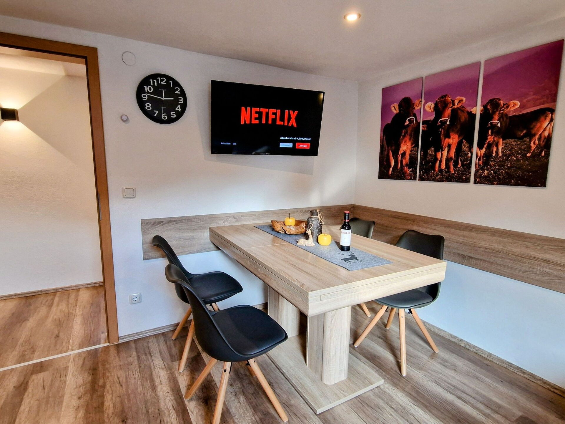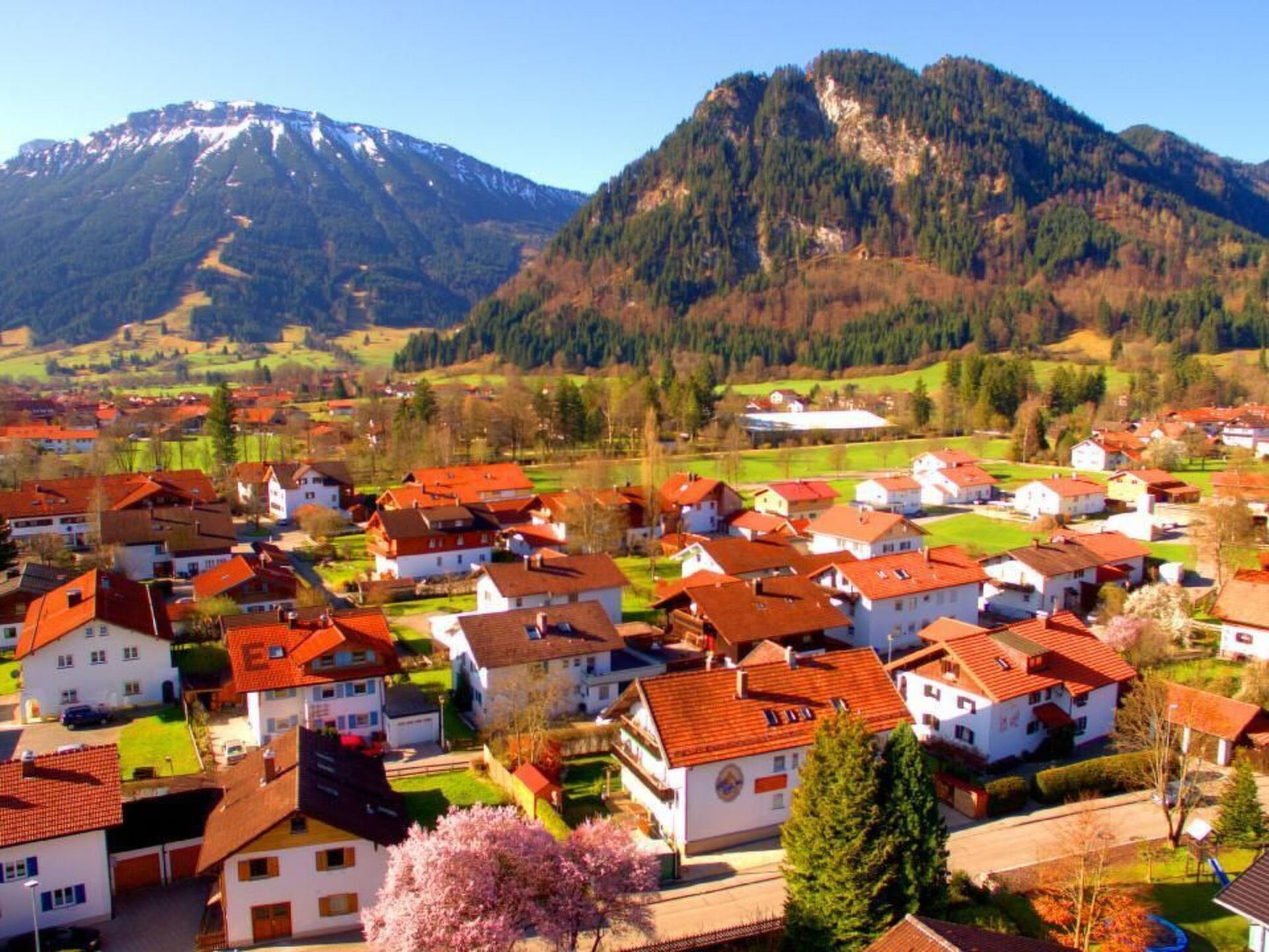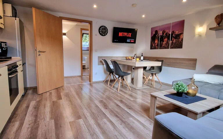 Discover the joys of a stay in our "Falkenstein" holiday flat, an oasis of peace with breathtaking mountain views in the heart of the picturesque Allgäu. This family-friendly 66 m² top-floor accommodation is perfectly tailored to the needs of up to 4 adults and a baby, complete with every comfort and typical Allgäu furnishings for an incomparable holiday.Inside, you will find a cosily furnished holiday flat with two bedrooms, each with a smart flat-screen TV. An additional baby cot is available for the youngest guests. The living room is furnished with a large, comfortable sofa, another Smart flat-screen TV and a kitchenette with dining area, ideal for shared meals. Self-caterers will appreciate the well-equipped kitchen. The spacious bathroom has two skylights, a round shower with shower master and a washing machine, alongside a separate WC for your convenience.Outside, the large east-facing balcony invites you to relax and enjoy the marvellous view of the Pfronten mountains.The "Falkenstein" holiday flat benefits from its fantastic location with panoramic skylights offering views of the Breitenberg, Kienberg, Falkenstein and other majestic peaks. Although quiet and sunny, the flat is centrally located with short distances to the mountain railways (10 minutes), the cross-country ski trail just around the corner and the centre, which is only a 5-minute walk away. There you will find the railway station, bus stop, bakeries, doctors, pharmacies and shopping facilities.Make your holiday in our Allgäu paradise an unforgettable experience. Benefit from the flexibility of our contactless check-in from 3 pm, allergy-friendly cleaning, a parking space included and other amenities such as the KönigsCard for over 200 free experiences. Here, in the "Falkenstein" holiday flat, you will not only experience the highest level of living comfort and excellent facilities, but also the incomparable beauty and tranquillity of the Allgäu.