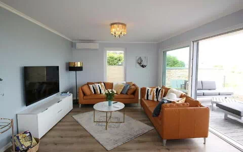 Direct aan het fijne zandstrand van Glowe woon je comfortabel in een exclusief vakantieappartement met vrij uitzicht op de Oostzee, de "Villa am Meer" direct aan het strand met uitzicht op de Oostzee is nu beschikbaar voor onze gasten. Het vakantieappartement van 100 m² heeft een gezellige woonkamer met geïntegreerde keuken, 2 slaapkamers met tweepersoonsbedden, 2 badkamers met douche en een sauna, en een terras met loungemeubels dat toegankelijk is vanuit het woongedeelte.Bijvoorbeeld: 2 parkeerplaatsen, waarvan er een is uitgerust met een elektrisch oplaadstation, een wasmachine-droger, tv in alle kamers, airconditioning, actieve ventilatie van het huis, binnen- en buitenzonwering met elektrische rolluiken, een hoogwaardige moderne keuken en een sauna dragen bij aan een onvergetelijke vakantie. Maar het belangrijkste is het uitzicht op de Oostzee en de korte afstand van ongeveer 50 meter naar het brede, fijne zandstrand van de Oostzee. Ontdek Glowe om te winkelen en te flaneren in boetiekjes en winkels, restaurants en cafés, profiteer van de centrale ligging in het dorp voor een wandeling over de nabijgelegen promenade.In plaats van met de auto kun je de omgeving ook verkennen met de fiets, mountainbike of inline skates, en de beboste kustlijn is ideaal om paddenstoelen te plukken vanaf augustus/september.bron Wikipedia:Rügen is het grootste en dichtstbevolkte eiland van Duitsland. Het ligt voor de Baltische kust van West-Pommeren en behoort tot het district Vorpommern-Rügen in de deelstaat Mecklenburg-Vorpommern.Het eiland heeft een oppervlakte van 926 km², een maximale lengte van 52 km (van zuid naar noord) en een maximale breedte van 41 km in het zuiden. Door de ijstijd is Rügen erg heuvelachtig en waterrijk. De kust is sterk ingesprongen door talrijke baaien en lagunes (Bodden en Wieke) en uitstekende schiereilanden en landtongen. In juni 2011 verleende UNESCO het Nationaal Park Jasmund op Rügen, bekend om zijn enorme beukenbossen en witte krijtrotsen, de status van werelderfgoed.[1]Rügen herbergt de centrale hoofdstad Bergen, de havenstad Sassnitz, de vorstelijke residentie Putbus, de plattelandsstad Garz en de Baltische badplaatsen Binz, Sellin, Göhren, Baabe, Thiessow, Breege en Altefähr. Rügen is een populaire vakantiebestemming, vooral dankzij het afwisselende landschap en de natuur, de rietgedekte en spa-architectuur met veel monumentale gebouwen, het groeiende aanbod aan horeca en cultuur en de lange, fijne zandstranden. Het eiland telde in 2014 ruim zes miljoen overnachtingen.[2]De Latijnse en historische naam van het eiland Rügen is Rugia. Het bijvoeglijk naamwoord voor het eiland is rügisch, ook rüganisch of Rügener. De "toegangspoort" tot het eiland Rügen is Stralsund, en Rügen is met het vasteland verbonden door de Rügendam en de Rügenbrug over de twee kilometer brede Strelasund. Vakantieappartement "Villa Glowe" EG - Direct aan het fijne zandstrand van Glowe kun je comfortabel verblijven in een exclusief vakantieappartement met vrij uitzicht op de Oostzee.