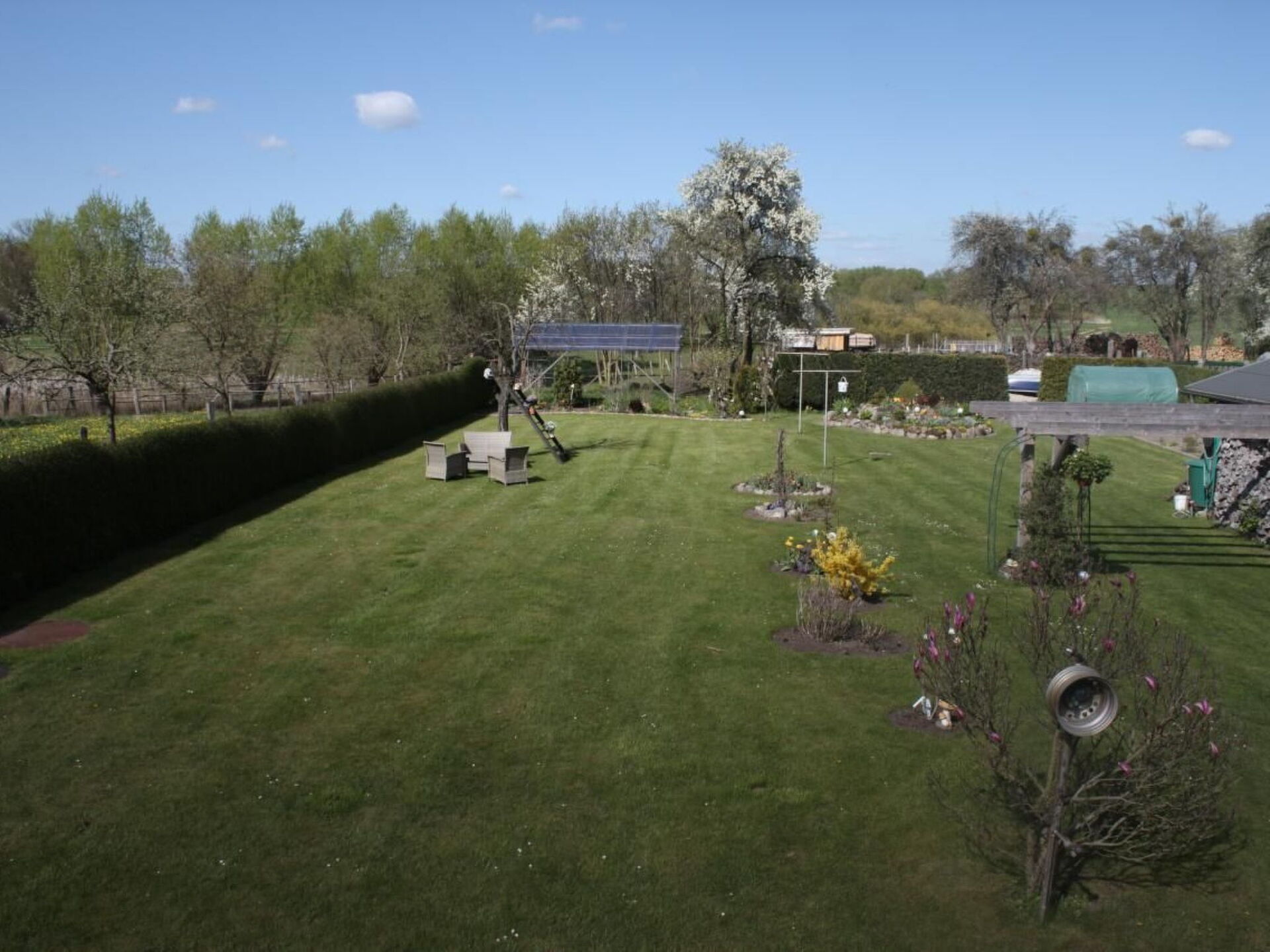 Maximaal 2 huisdieren/honden toegestaan. Discover our charming holiday home, idyllically situated in the village centre, only about 200 m from the church and on the road to and from Angermünde. In a quiet residential area, our house with 64m² of living space and a spacious garden offers the ideal retreat for your relaxing holiday. The interior leaves nothing to be desired: Two cosy rooms invite you to linger, complemented by a fully equipped kitchen with fridge-freezer, electric hob, oven, microwave, dishwasher, coffee machine, toaster and kettle. A wood-burning stove provides cosy warmth on cooler days, while Wi-Fi guarantees a constant connection to the outside world. A modern bathroom with shower and toilet completes the offer.Outside, a terrace with a wooden balcony invites you to enjoy breakfast in the morning sun or cosy evenings. The enclosed garden offers plenty of space for relaxation and play, complemented by barbecue facilities for socialising. A private car park is also available so that your vehicle is safely parked.The area surrounding the holiday home is just as attractive: there is a lake just 1 km away, which is ideal for various water sports activities. The holiday home is located in Altkünkendorf, part of the wooded and lake-rich landscape of the Schorfheide-Chorin biosphere reserve. In this unique natural landscape you will find relaxation and adventure in equal measure. The nearby Grumsiner Forest, a UNESCO World Heritage Site, offers ideal conditions for hiking, cycling and observing the local flora and fauna.Our holiday home in Altkünkendorf is the perfect place for anyone who enjoys nature, is looking for peace and quiet and yet doesn't want to compromise on comfort. Whether you want to spend relaxing days in the garden, explore the cultural sights of the region or engage in sporting activities - here you will find the ideal starting point for your activities. Treat yourself to an unforgettable holiday in this unique environment.