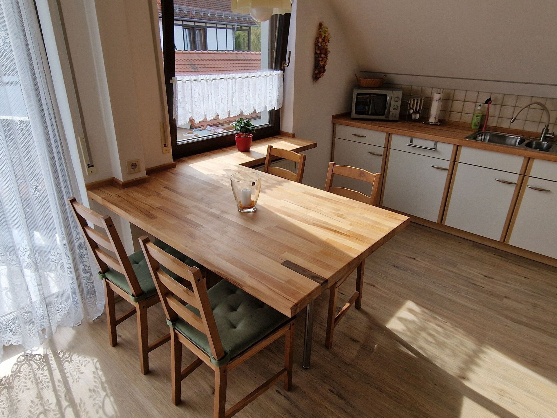 Discover your perfect holiday home in our charming holiday flat, which is located in the idyllic climatic health resort of Jonsdorf, in the heart of the Zittau Mountains. For up to two adults, this accommodation offers a cosy ambience surrounded by a breathtaking low mountain range landscape and promises an unforgettable stay in the south-easternmost corner of Saxony.Inside, you will find a comfortable living room with air conditioning, furnished with a sofa, armchair and a TV with satellite connection. A separate bedroom with a cosy double bed (180x200) ensures peaceful nights. The kitchen is fully equipped with dishwasher, hob, oven, microwave, coffee machine, toaster, kettle, fridge and plenty of crockery. The bathroom not only offers the usual amenities, but also pampers you with a small sauna - ideal for relaxing after an active day.The outdoor area includes amenities such as a barbecue area to make your stay a pleasant one - enjoy the sun on your balcony or make use of the practical car park right next to the house. The flat not only impresses with its high-quality interior design, but also with its lovely outdoor details.The area surrounding the holiday accommodation also has a lot to offer: just 500 metres away you will find shops for your daily needs, while a restaurant and public transport are only 200 metres away. For winter sports enthusiasts, there is a cross-country ski trail just 1 km away, and the local outdoor pool and train station are just as far away, which will delight both summer and winter holidaymakers. Take the opportunity to explore the picturesque surroundings or take day trips to neighbouring countries.Let yourself be enchanted by the charming atmosphere of Jonsdorf and enjoy a stay full of comfort, relaxation and adventure. Whether you want to relax in our oasis of well-being or explore the charming surroundings - our holiday flat is the ideal starting point for your activities. Look forward to relaxing days in one of Saxony's most beautiful landscapes!