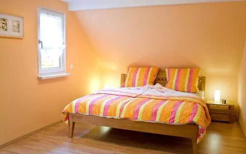 Welcome to the Brandmühle holiday flat in the spa town of Bad Schlema! Simply relax for a few days and enjoy the Ore Mountains. Whether in summer or winter - the charming landscape always invites you to relax.The holiday flat is located on the top floor of the Brandmühle, which was built around 1880. The holiday flat was completed in September 2008 and furnished in a modern style. The holiday flat on the top floor of the Brandmühle consists of a living room, bedroom, kitchen, bathroom, hallway and roof terrace. It offers space for two people. In addition, there are two extra beds on the sofa bed in the living room - a travel cot can be provided on request. Internet via W-lan is available throughout the flat and can be used free of charge. In the living room there is cable TV, stereo system, desk, sofa bed to pull out. In the fully equipped kitchen there is: fitted kitchen with oven and ceramic hob, dishwasher, microwave, toaster, coffee machine, kettle, egg cooker and radio. In the bedroom there is a double bed (bed linen is provided). The bathroom has a bathtub, shower and stereo radio with CD (MP3). The floors in the flat are made of laminate - in the bathroom tiles.Use of sauna with advance notice and for a fee.We offer you a parking space for one car in the property. Charging an electric car is possible at a 230 V socket with advance notice and for a fee.The flat is generally non-smoking, but smoking is possible on the terrace.The Kurmittelhaus is a short walk of approx. 850 metres. The bus stop is a three-minute walk away. There are three restaurants in the immediate vicinity. The nearest motorway exit is approx. twelve minutes away.