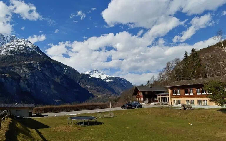 This spacious private flat apartment, located in the upper floor, has heated hardwood parquet floors, temperature control, wooden ceilings and walls, sound and heat proof windows. It comprises 3 bedrooms, two bedrooms with large double beds and one bedroom with 4 bunk beds. A sofa in the living area can be transformed into an extra double bed. Bedrooms are equipped with linen, wardrobe/closet and mosquito net. A well-equipped kitchen, including a regular refrigerator, oven and convection stove top, a dishwasher, a toaster and electric kettle, complete kitchenware, children’s high chairs available as well. 2 private bathrooms with tile marble floors, one with a shower and the other with a bathtub, hair dryer, a toilet for each bathroom, paper and towels. It features a seating/dining area with dining table, a flat-screen TV with radio and satellite channels. Wash and dryer machines are available in a separate commun washing room. A barbecue is available in the garden. All our apartments and rooms are non smoking.Nearby sports facilities: Basketball, Mountain climbing, Ice skating, Golf course, Canoeing, Climbing, Mountainbiking, Paragliding, Bike tours, Rafting, Horse stalls (guests), Indoor riding arena, Riding possibilities, Toboggen, Rowing, Skiing (alpin), Cross-country skiing, Squash, Tennis, Water skiing