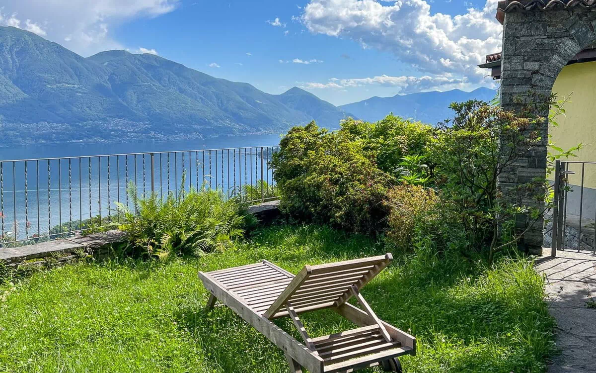 Those who feel at home hereAdventurous families, couples and active retirees who want to relax and at the same time appreciate the cultural and culinary possibilities of Locarno and Ascona will find the perfect retreat at Casa Riale.About the accommodationAfter climbing up to the flat, the view of the Riviera del Gambarogno opens up - a panorama that you won't soon forget. Thanks to the sunny south-facing position, the sun shines into the garden and onto the terrace from morning to evening. At the same time, the house remains pleasantly cool as it is built directly into the mountain rock at the edge of the forest. When you arrive here, you immediately feel a sense of peace and space.Important to knowThere is a small stream with a waterfall next to the house. What is relaxing for many can be dangerous for children - they should never play here unsupervised. There are around 50 steps to climb to get to the flat. The accommodation is therefore less suitable for disabled or elderly guests.Room layoutThe upper flat is suitable for four people. It has a well-equipped kitchen, a spacious living area with fireplace and two bedrooms. There is also a terrace with a seating area, fireplace and small lawn - a place to enjoy during the day and socialise by the fire in the evening.Location and connectionsCasa Riale is around ten minutes by car from Locarno and Tenero. The nearest bus stop is about 500 metres away. Access is via a stone staircase with 50 steps, which should be taken into account when travelling and packing.Activities and experiencesThe region offers a wide range of activities: Hikes through the surrounding forests, a visit to the "Elisarion" art museum in Brione or an excursion to Cardada-Cimetta with breathtaking views over Lake Maggiore. Those who like to savour the pleasures of life can stop off at a typical grotto or relax in the wellness park and Lido in Locarno. You can also experience the Ticino way of life right by the house - by firing up the garden fireplace and enjoying a cosy barbecue in the open air. NL-00001771