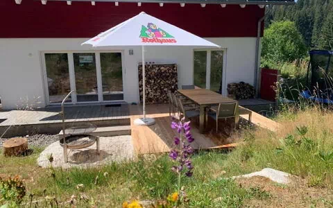 Enjoy a few days in the Black Forest, far away from mass tourism in the quiet Blasiwald directly on the Schluchsee and yet in the centre of the Black Forest Nature Park. And all this in a detached holiday home with 140m2 of space for the whole family.With 2 bathrooms and 3 bedrooms, it is also suitable for 2 families. The Schluchseehuus is brand new and has only been available to rent since summer 2018. It is ideal for families who want to have a little space on holiday in the middle of the Schluchsee recreation area. Very well equipped, whether in the kitchen or in the living and dining area. In addition, there is a fire pit with a swing barbecue, a table tennis table, a trampoline, a hammock and of course our canopy lounger for relaxing on the 1000m2 property, which borders directly on the forest. The accommodation is a 10-minute walk from the beach. Equipped with flat screen TV (SAT), free WLAN, own washing machine and a Swedish stove for cold winter evenings. Wood for the Swedish stove is provided. You can park free of charge in a garage at the accommodation. A car charging point is available (for a fee). We are a family from Switzerland who are happy to make the holiday home, which we also use ourselves, available in our free time. It is important to us to be able to rent out a holiday home with a personal ambience, so that you can really feel at home on holiday. There is a 160 km network of well-signposted hiking trails nearby, ideal for hiking or cycling. A bike hire shop, also for electric bikes, is less than 10 minutes away. The nearby Schluchsee lake is ideal for swimming, fishing, diving, surfing and sailing. In winter, you can enjoy 60 km of cross-country ski trails. A 20-minute drive takes you to the ski area on the Feldberg, the highest mountain in the Black Forest. Breakfast is not provided, but can be enjoyed at the Blasiwälderhof, 3 minutes away. Freiburg is a 50-minute drive from the Schluchseehuus.Short descriptionOther : Non smoking houseShort description 1Number of kitchens : 1Bedroom 2Other bedroom furnishings : Single bed is a couch that can be extended to 160 cmSurroundingsHire facilities : boat hire, bike hire, ski, snowboard or sledge hireSports facilities in the area : fishing, canoeing, mountain biking, cycling, tobogganing, rowing, sailing, cross-country skiing, alpine skiing, sports centre, divingGarden and outdoor facilitiesLeisure facilities at the property : Table tennisGarden equipment : Garden furniture available, Barbecue, Playground equipment