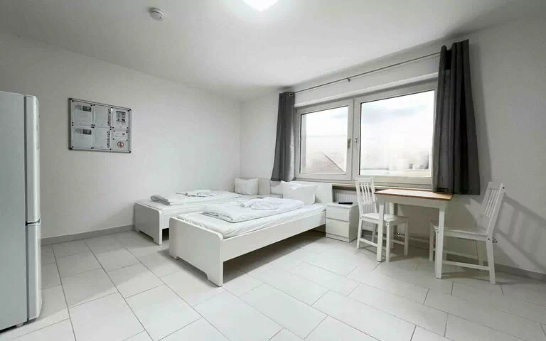 The furnished 31 m² upper floor flat near Regensburg has one bedroom with two single beds and is suitable for two people.You can see the exact room and bed layout on the floor plan of the accommodation.There is a fully equipped kitchen including electronic appliances such as a fridge/freezer, coffee machine and basic cooking equipment (pots, pans, kitchen utensils and cutlery).The bathroom consists of a shower, WC and washbasin.The flat has a Smart TV.Wi-Fi is available free of charge throughout the accommodation. There is also a washing machine at your disposal.All utilities, WiFi, bed linen, bath towels and towels are included in the price.Public transportYou will find free / public parking spaces behind the flat.The accommodation has excellent transport connections and is only a short distance from main roads (B15) and motorways (A93/A3).NeighbourhoodNumerous shopping facilities as well as cafés and restaurants are in the immediate vicinity. Regensburg city centre is only around 5.5 km from the accommodation.